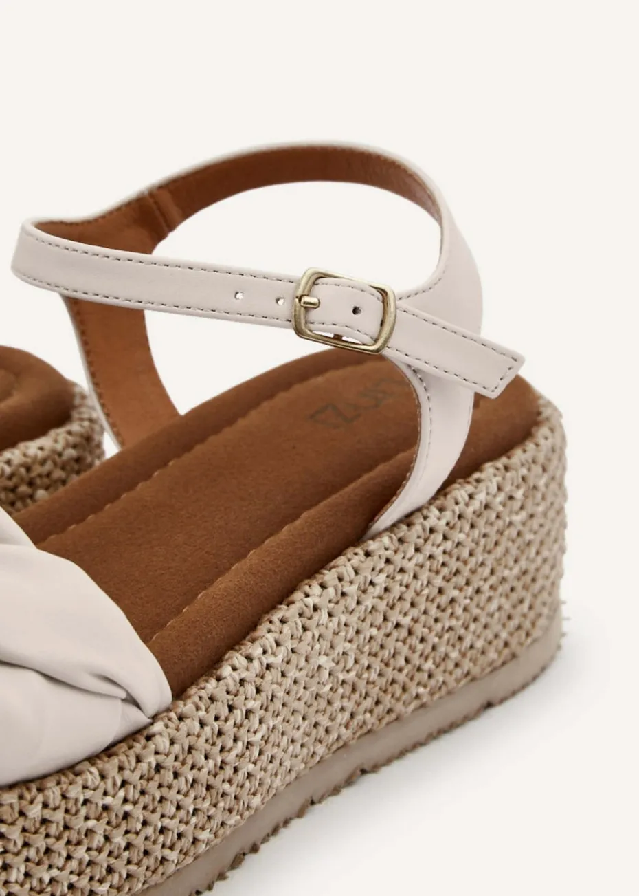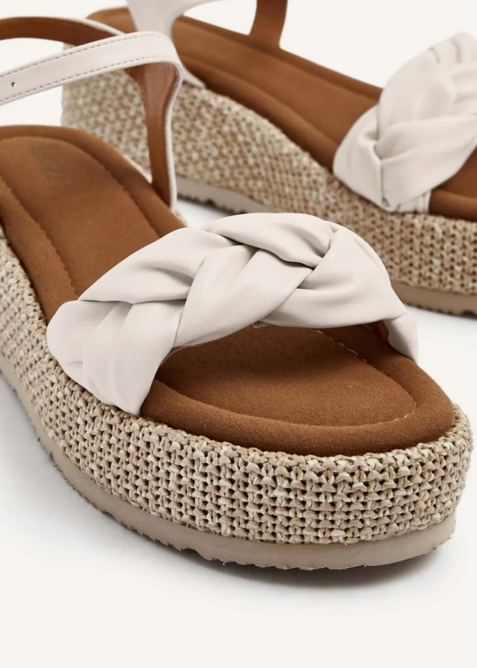 Experience stylish and comfortable footwear this summer with our Twist sandal. Crafted from faux leather, these sandals boast a distinctive quilted braid design and a natural-coloured raffia sole for a unique touch. The adjustable ankle strap and signature padded insock provide all-day comfort. Platform Height: 5cm.