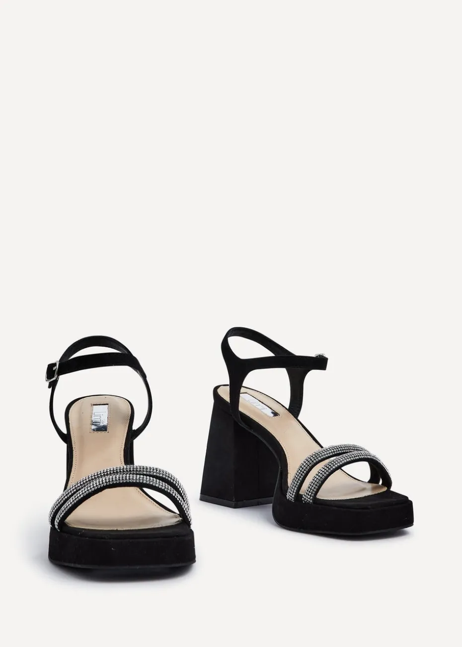 Elevate your look with the Xandra platform heels. Crafted from luxurious faux suede with a sparkling double diamante front strap, these heels make a chic and sophisticated entrance. Offering a platform height of 2cm and a heel height of 10cm..