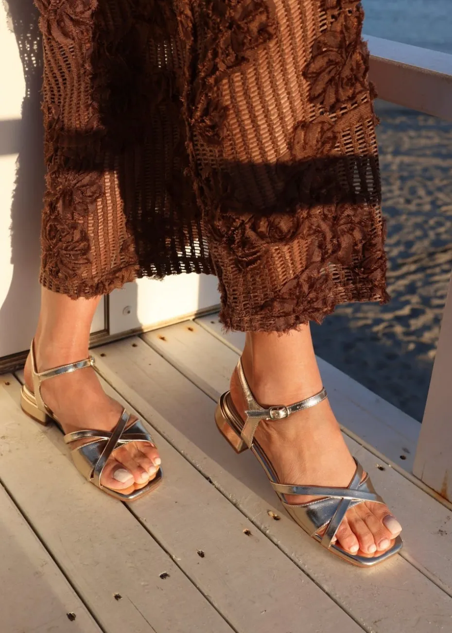 Be the first to review “Linzi Zenna Gold Faux Leather Strappy Low Block Heeled Sandals” Cancel reply