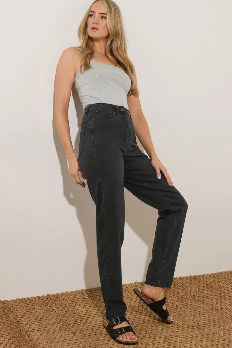 Long Tall Sally Black Washed Una Stretch Mom Jeans