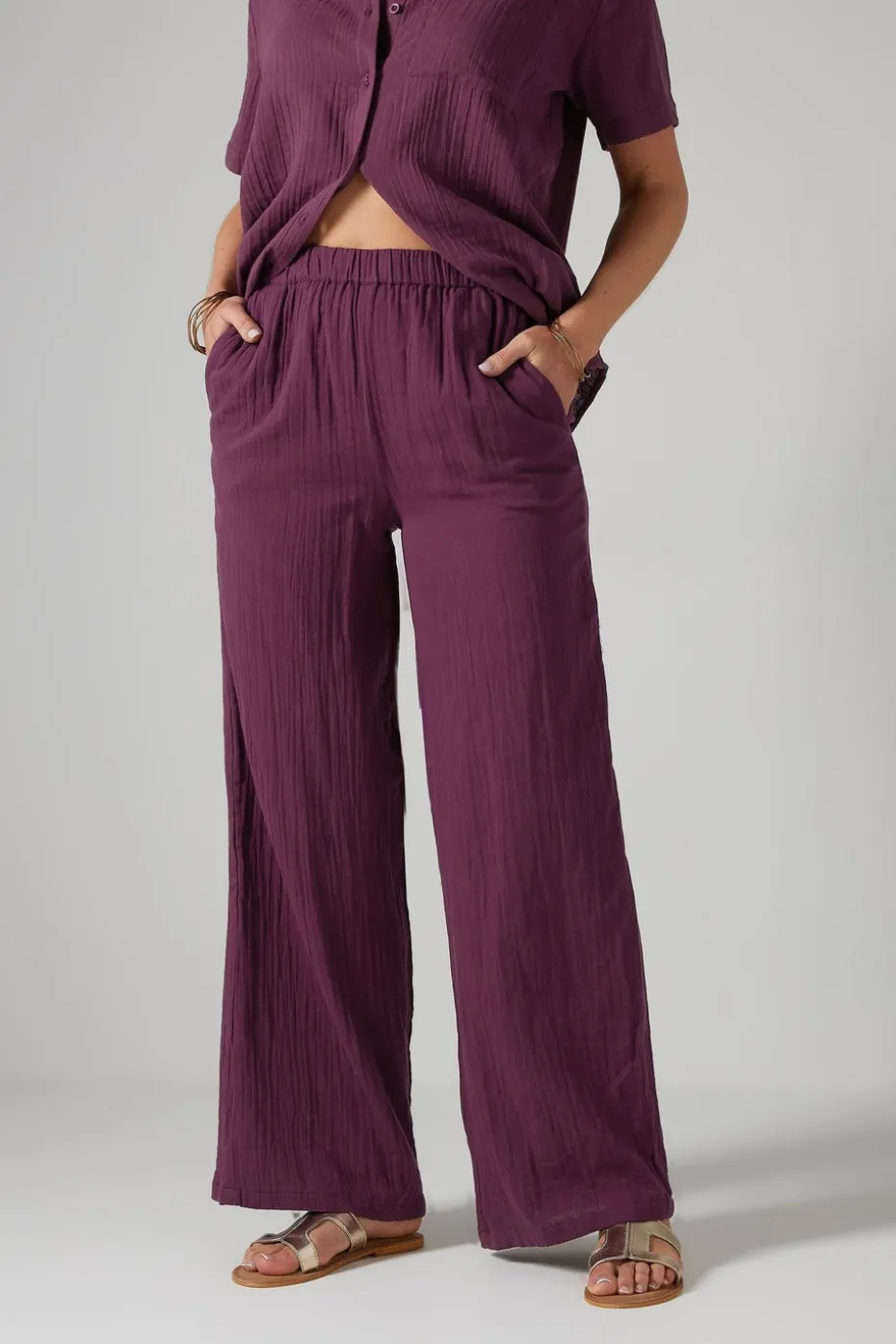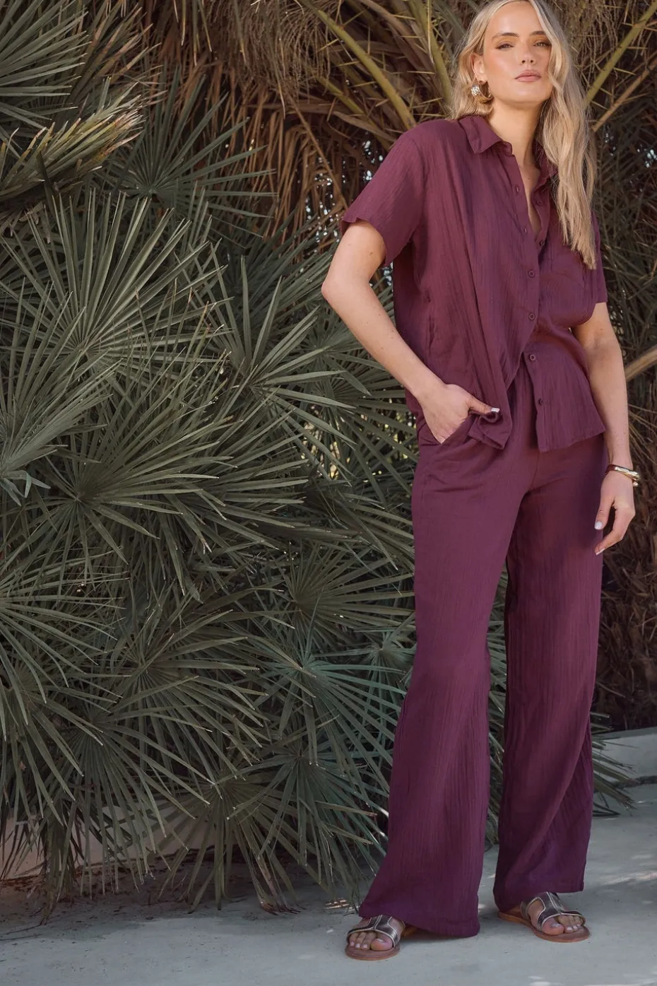 Long Tall Sally Dark Red Cotton Cheescloth Wide Leg Trousers