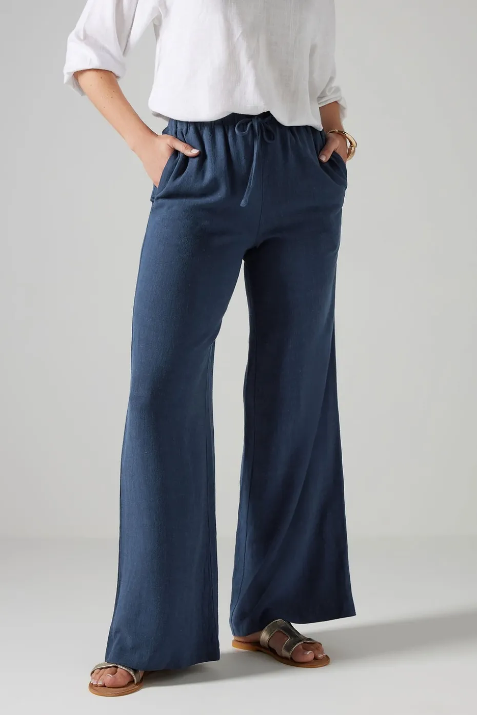 Be the first to review “Long Tall Sally Navy Blue Linen Tie Waist Trousers” Cancel reply