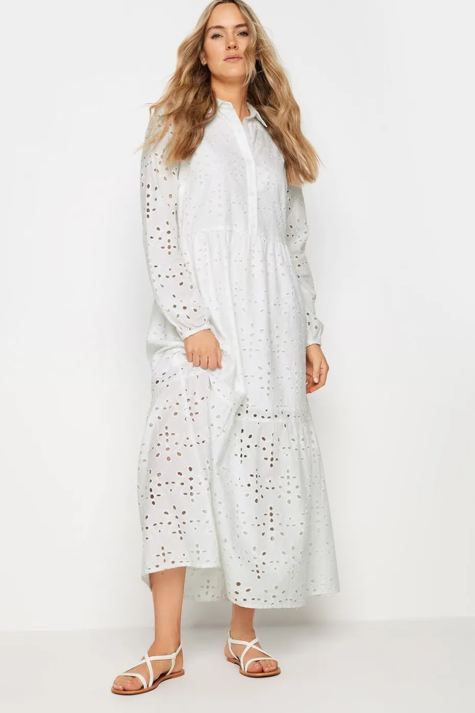 Long Tall Sally White Broderie Anglaise Maxi Shirt Dress