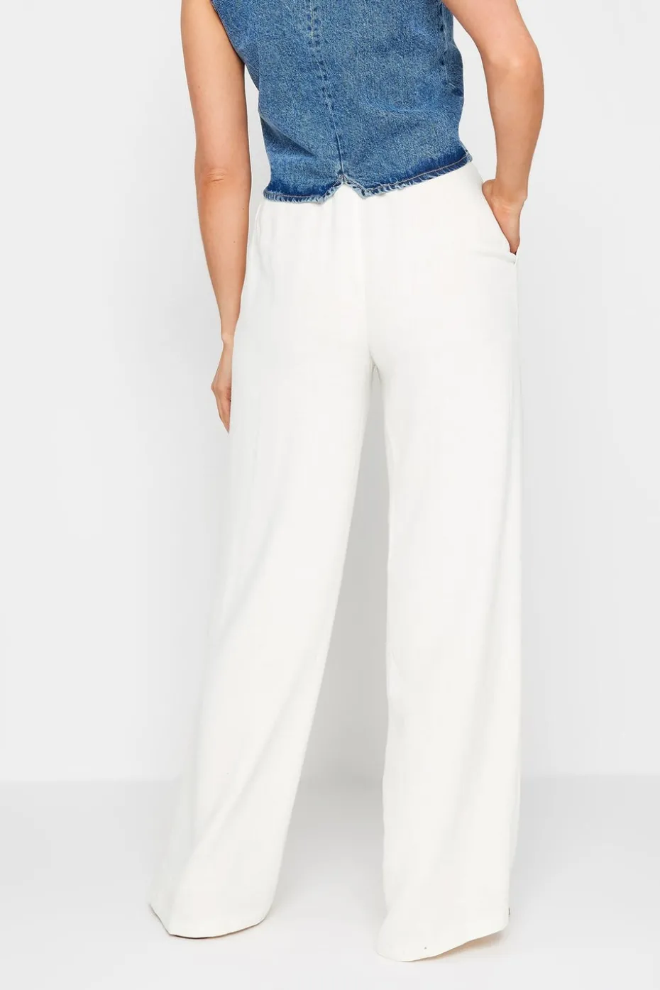 Long Tall Sally White Linen Tie Waist Wide Leg Trousers