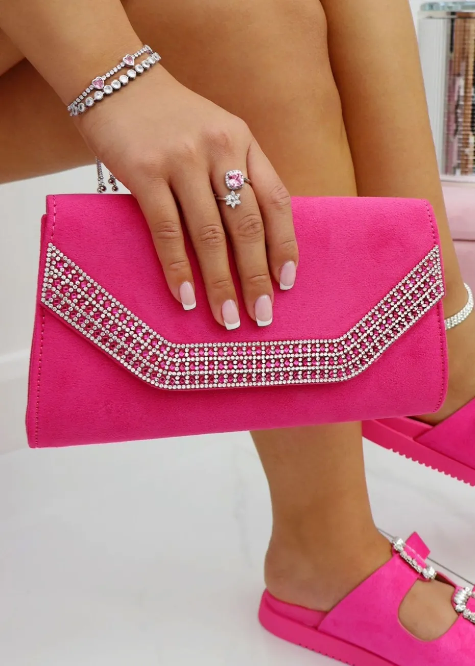Our striking suede feel evening bags come complete with genuine crystal embellishments and a detachable shoulder strap for multiple ways to style.