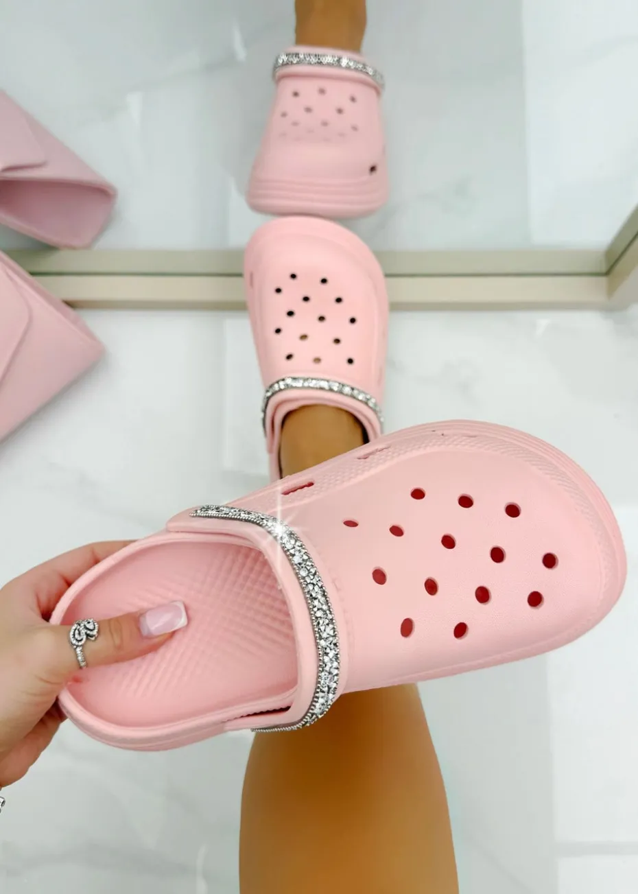 These statement-making clogs combine fashion-forward chunky soles with sparkling crystal trim for a look that’s equal parts edgy and glamorous.