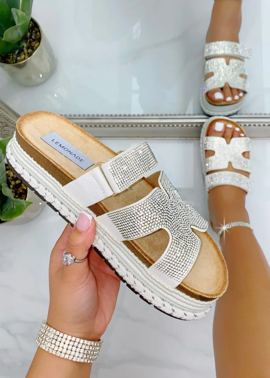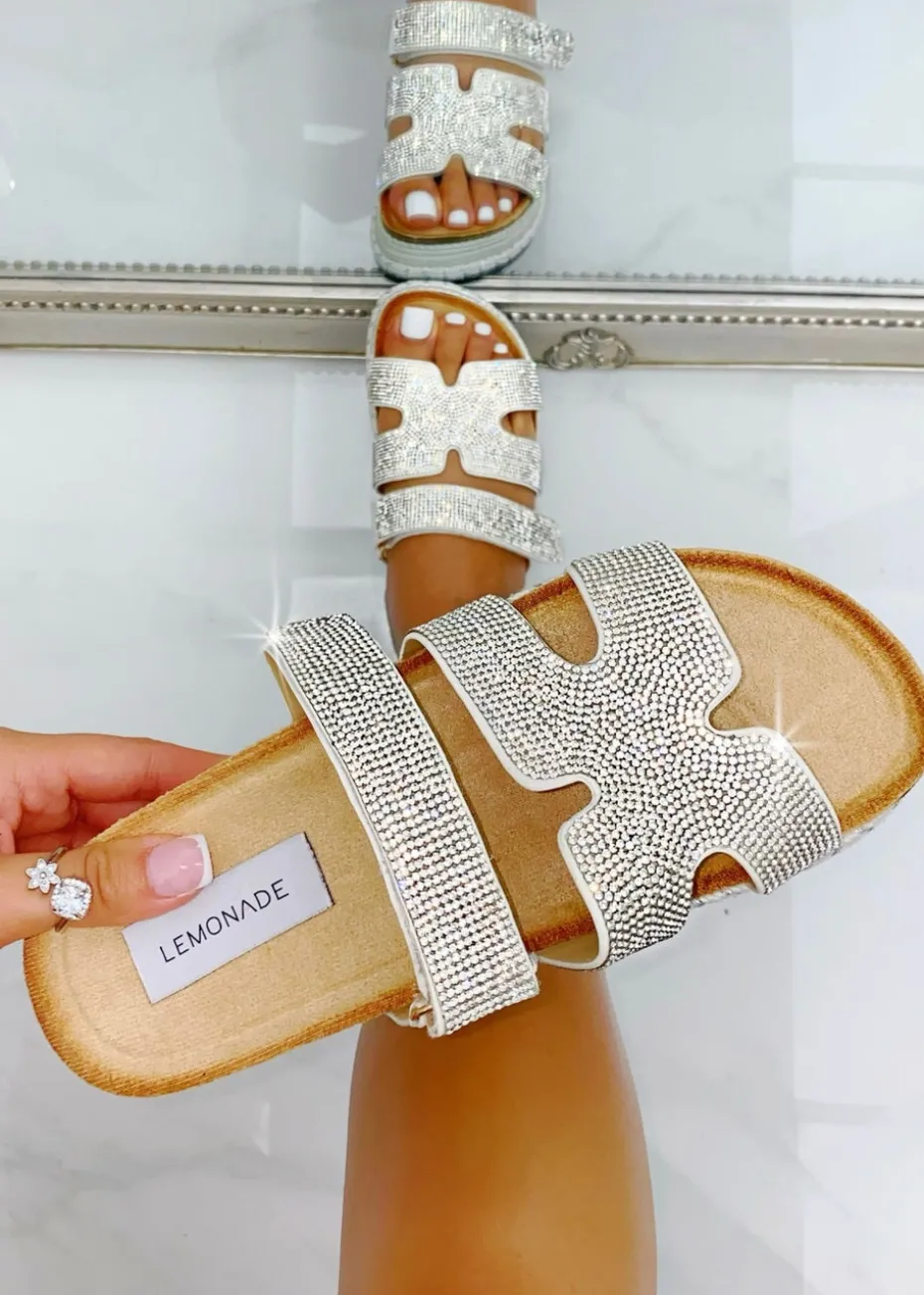 Love Lemonade Silver Crystal Luxe Double Strap Sliders