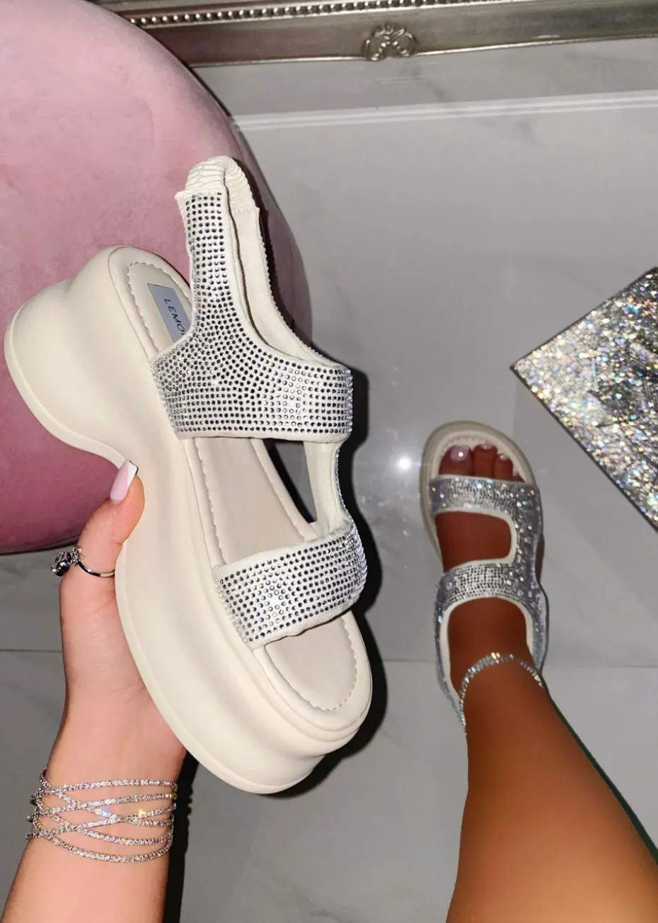 Love Lemonade White Crystal Glimmer Chunky Sandals