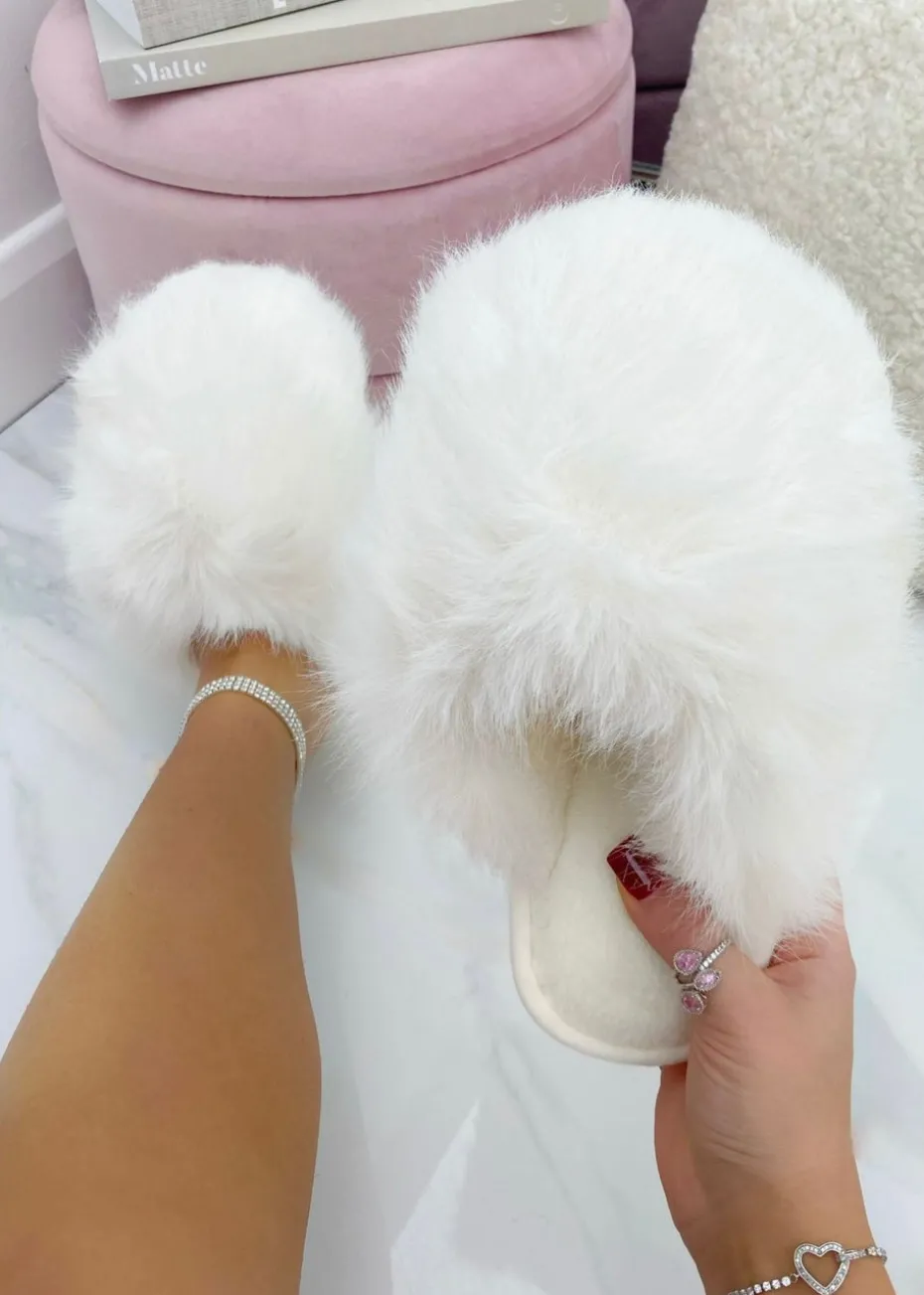 Made with statement oversized faux fur details and cloud-soft materials, these slippers are designed to keep your feet warm and cosy while adding a touch of glamour to your everyday.