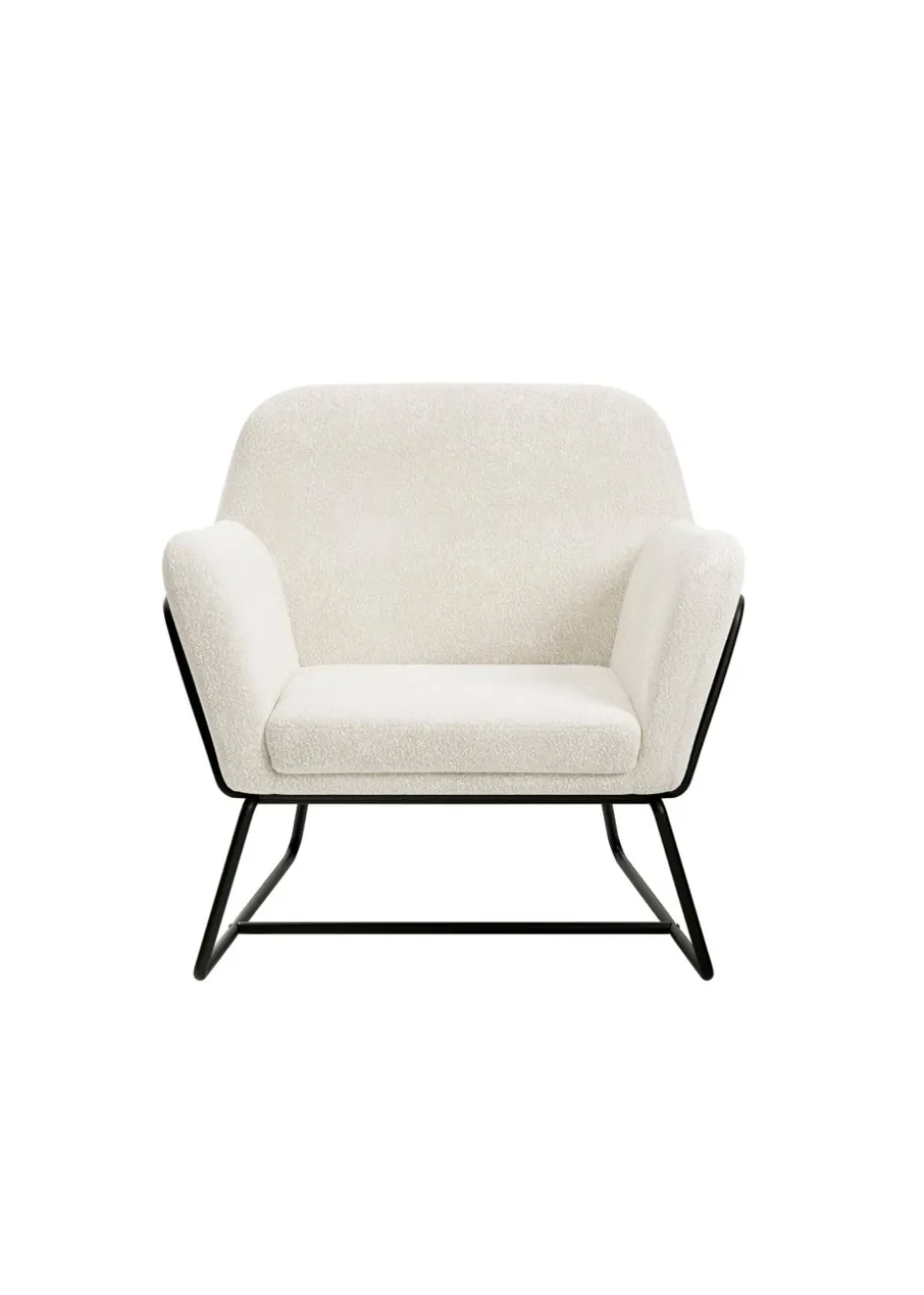 The Charles chair features clean lines with textured ivory boucle, combined with a sleek matt black frame. Elevating your space in both sophistication and comfort. Airy, refined and inviting, offering the perfect spot to relax in style.