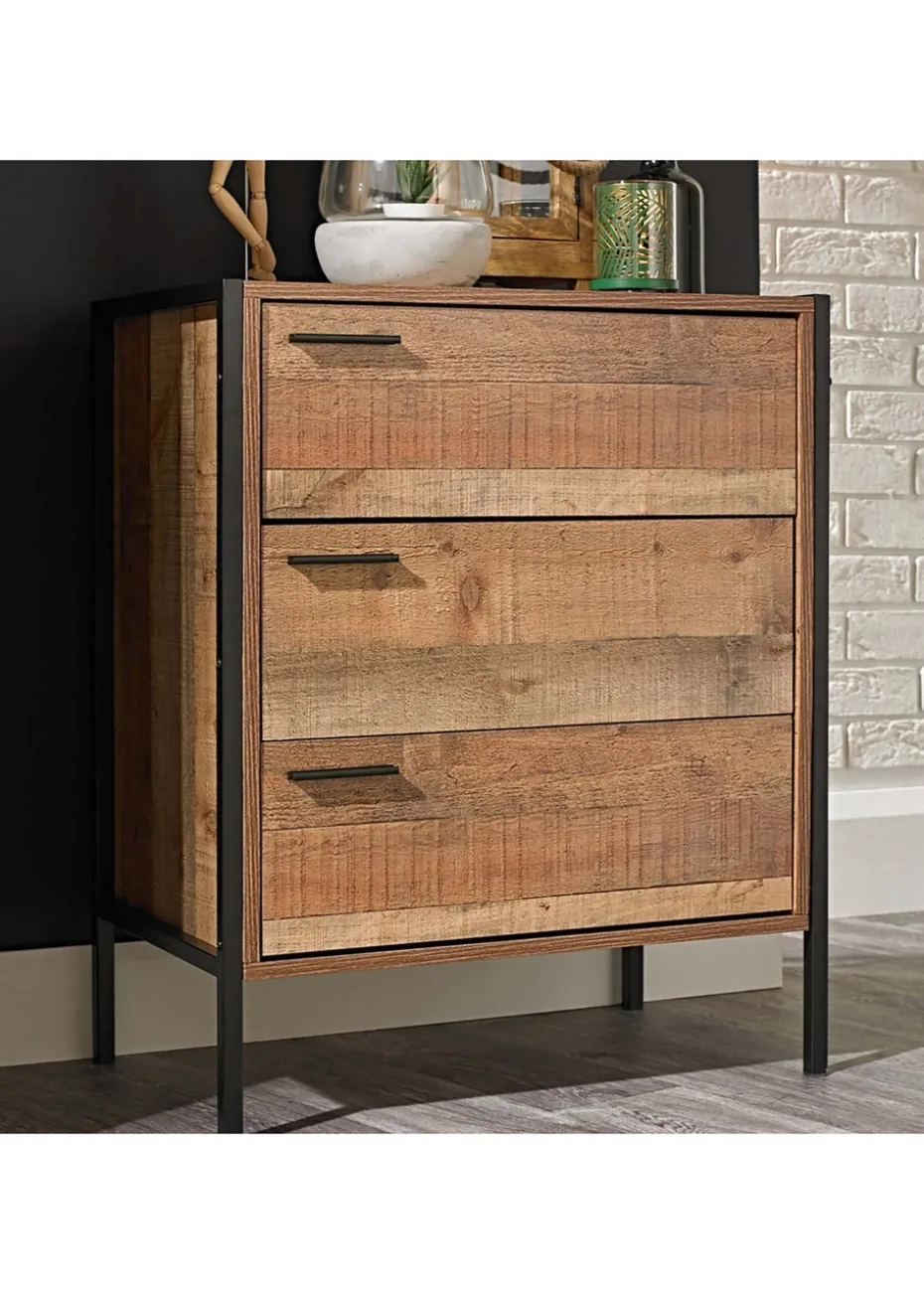 LPD Furniture Hoxton 3 Drawer Chest Distressed Oak Effect (800x400x638mm)