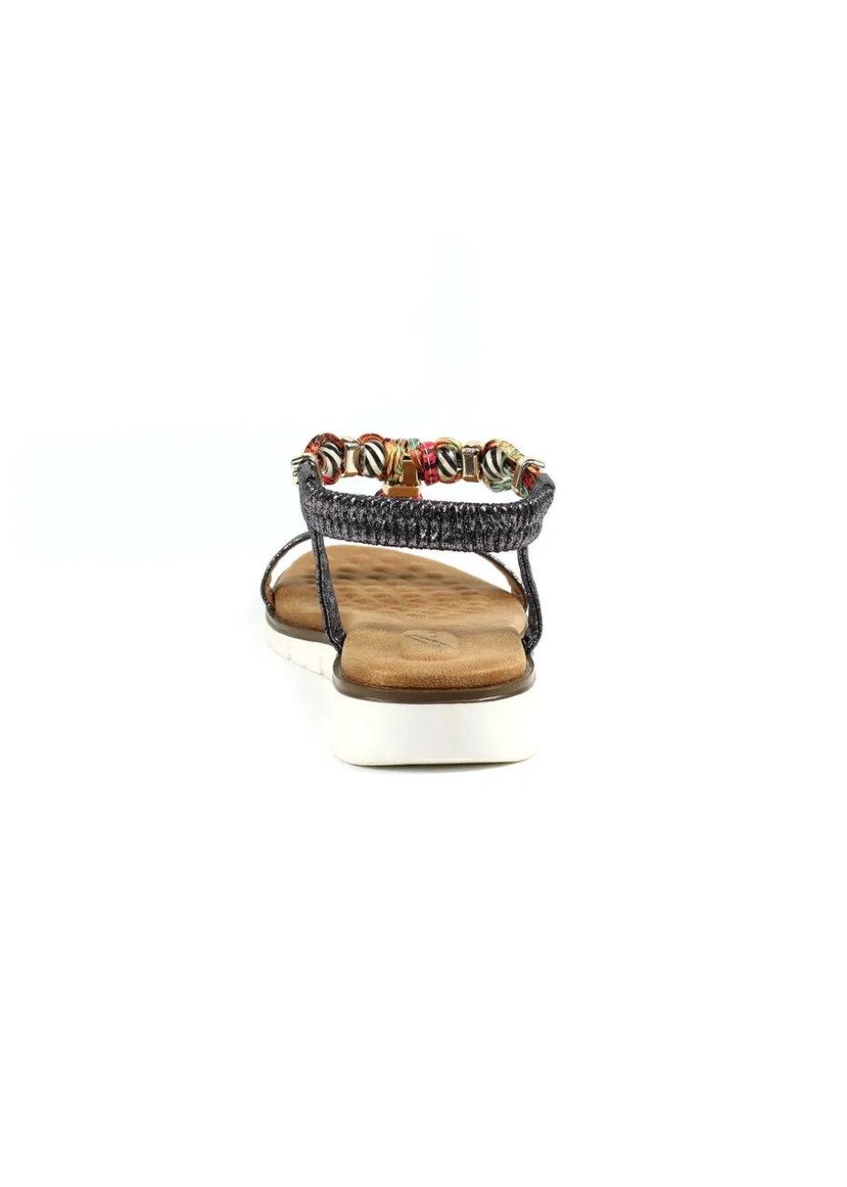 Elevate your sandal collection with the Tempo in pewter. With a comfortable padded insole and a secure elasticated ankle strap, this sandal offers style and comfort. Adorned in multicoloured beads and featuring woven straps, you’ll be sure to step out in sophistication wearing Tempo.