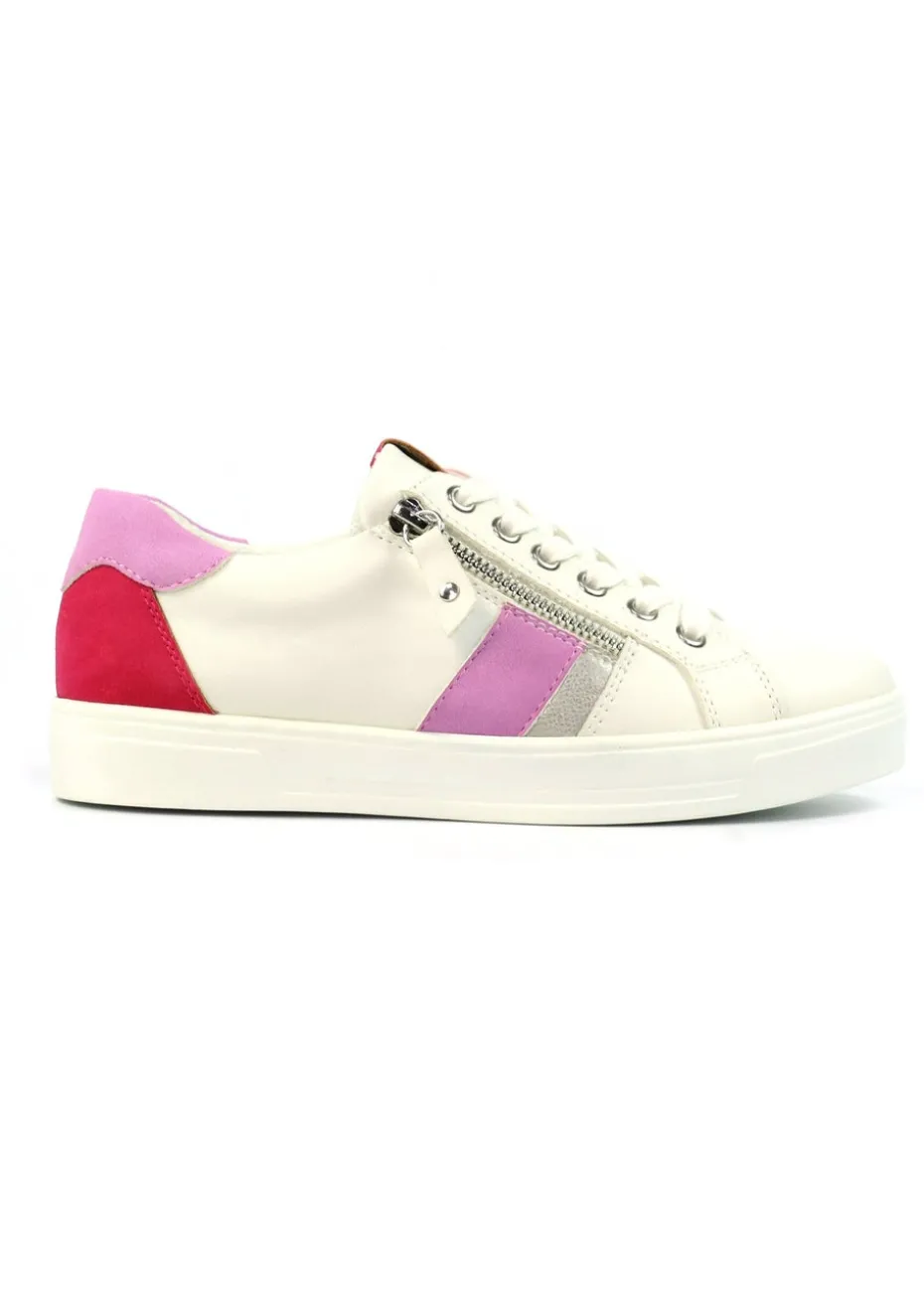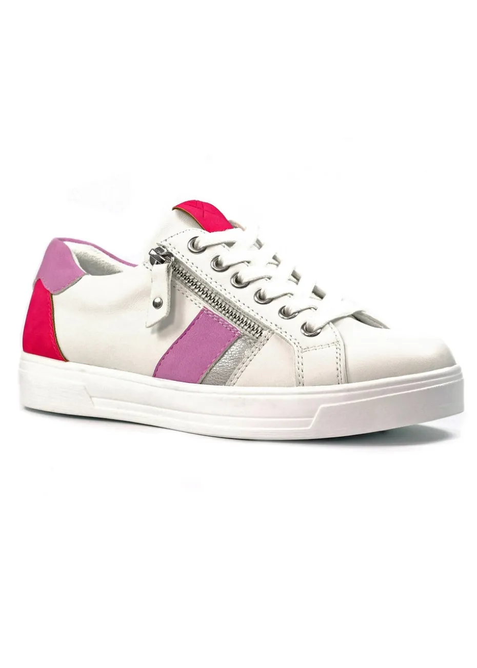 Look your best in the Angelica pink trainer. Featuring a mix of pink, red and silver panels, this trainer will add a touch of colour and shine to your seasonal style. With a lace-up front, padded insole and convenient side zip – staying on trend has never felt more comfortable.