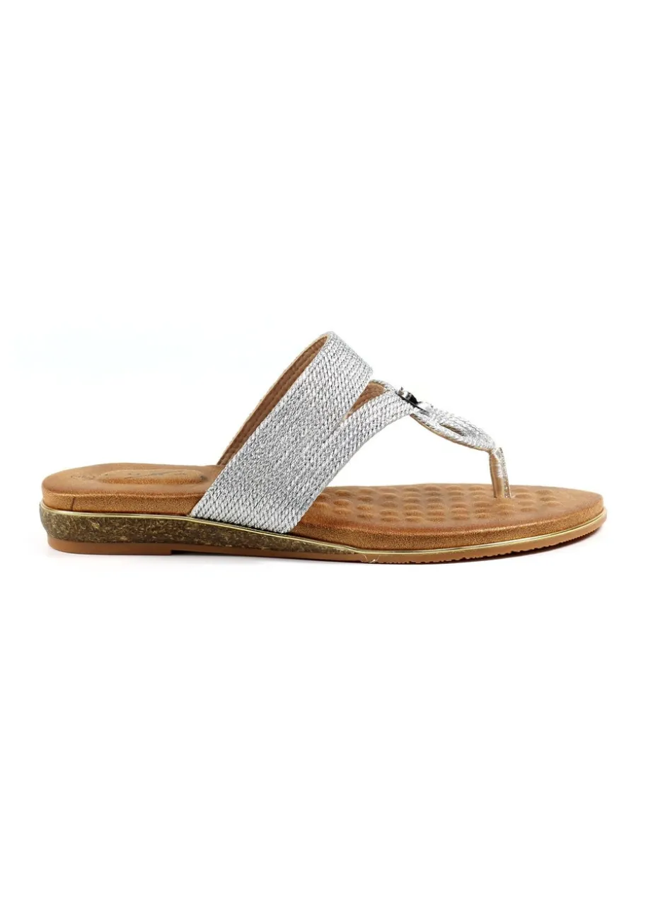 Stylish and comfortable, the Ezra silver sandal is a must-have for your summer wardrobe. Crafted from soft textiles and featuring a padded insole, comfort is guaranteed. The woven straps featuring a centre gemstone is sure to turn heads this summer. Step out in style wearing the Ezra.