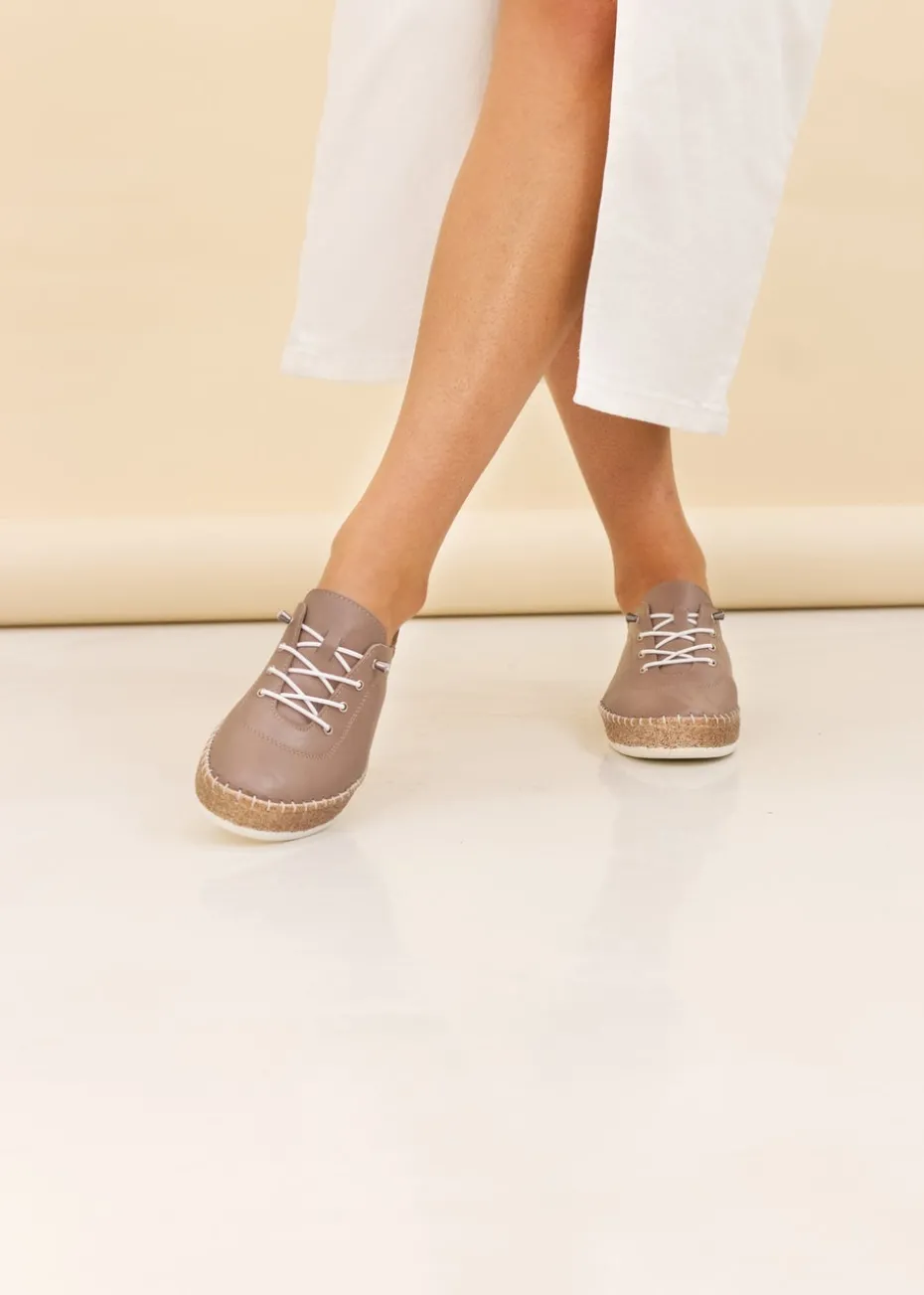 Meet the Evie taupe leather plimsol – the ultimate blend of style and comfort. With a soft leather upper and chunky sole, they provide a comfortable and supportive fit ideal for everyday wear. Perfect for relaxed summer outings or leisurely strolls, ensuring all-day comfort and style.