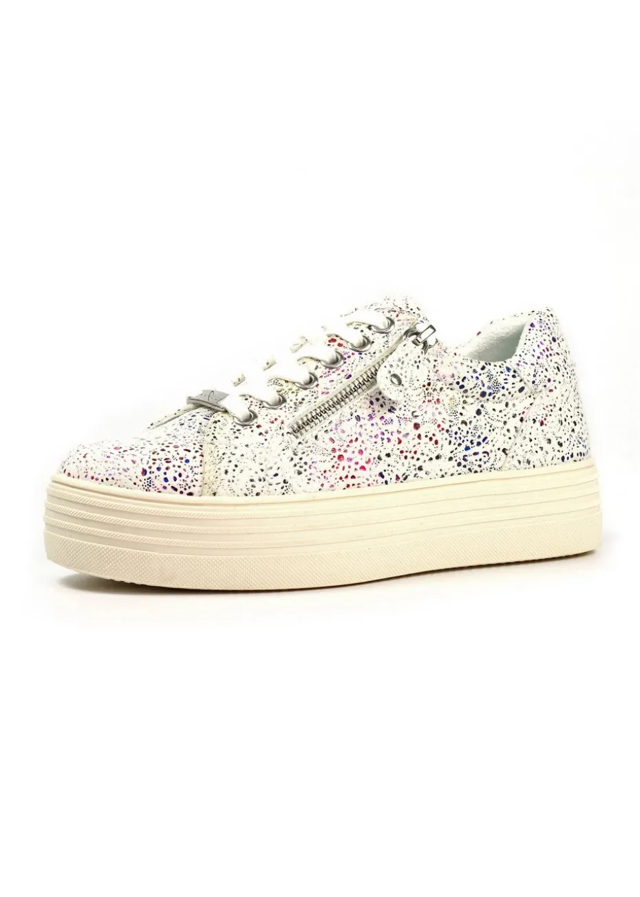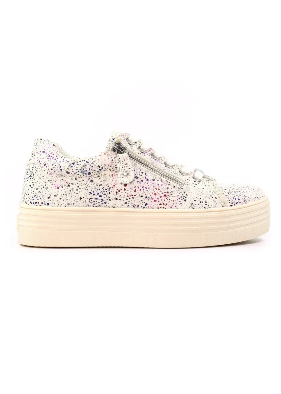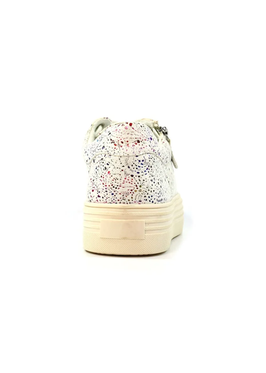 Elevate your look in the Detroit white trainer. Lifted on a super chunky sole, this style oozes modern-luxe. The metallic multicolour pattern and gold branded lace tag create a statement shine, while the padded insole ensures optimal comfort.
