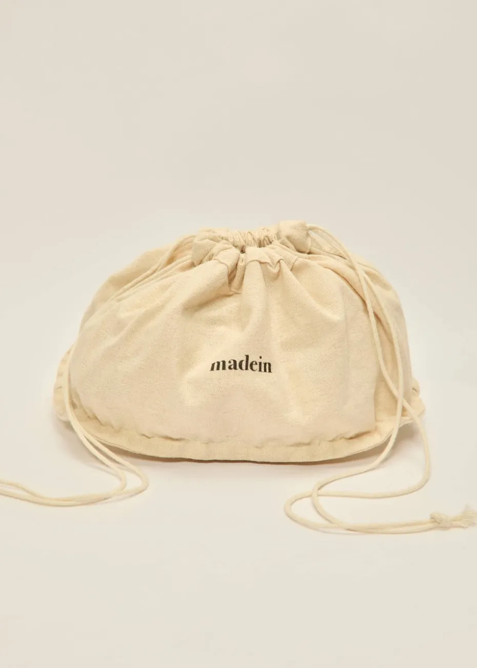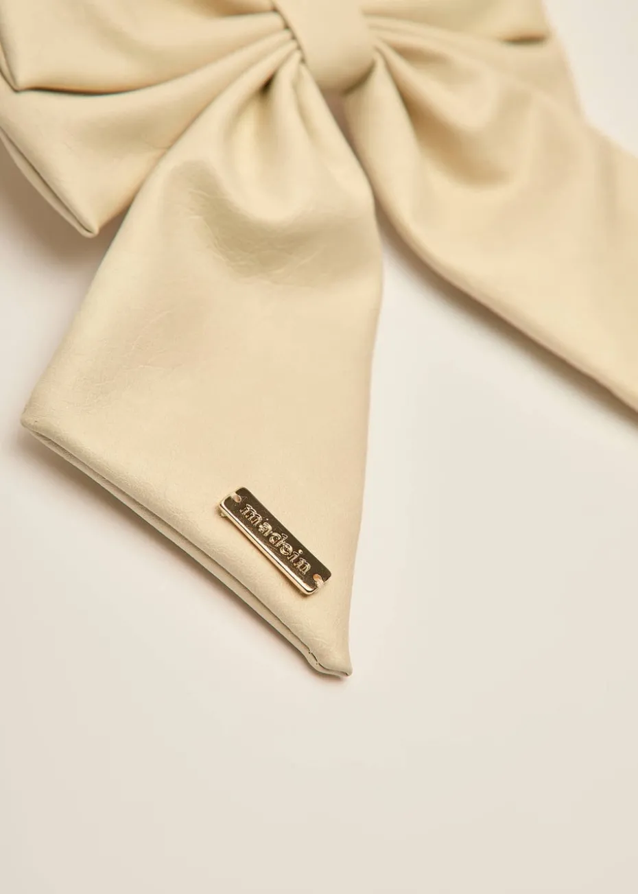 The luxe Polly Bow features a premium pressed PU fabrication with a Madein branded sophisticated plaque.