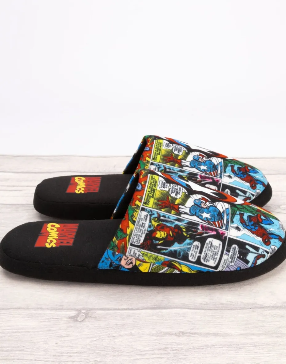 Marvel Mens Black Character All-Over Print Mule Slippers