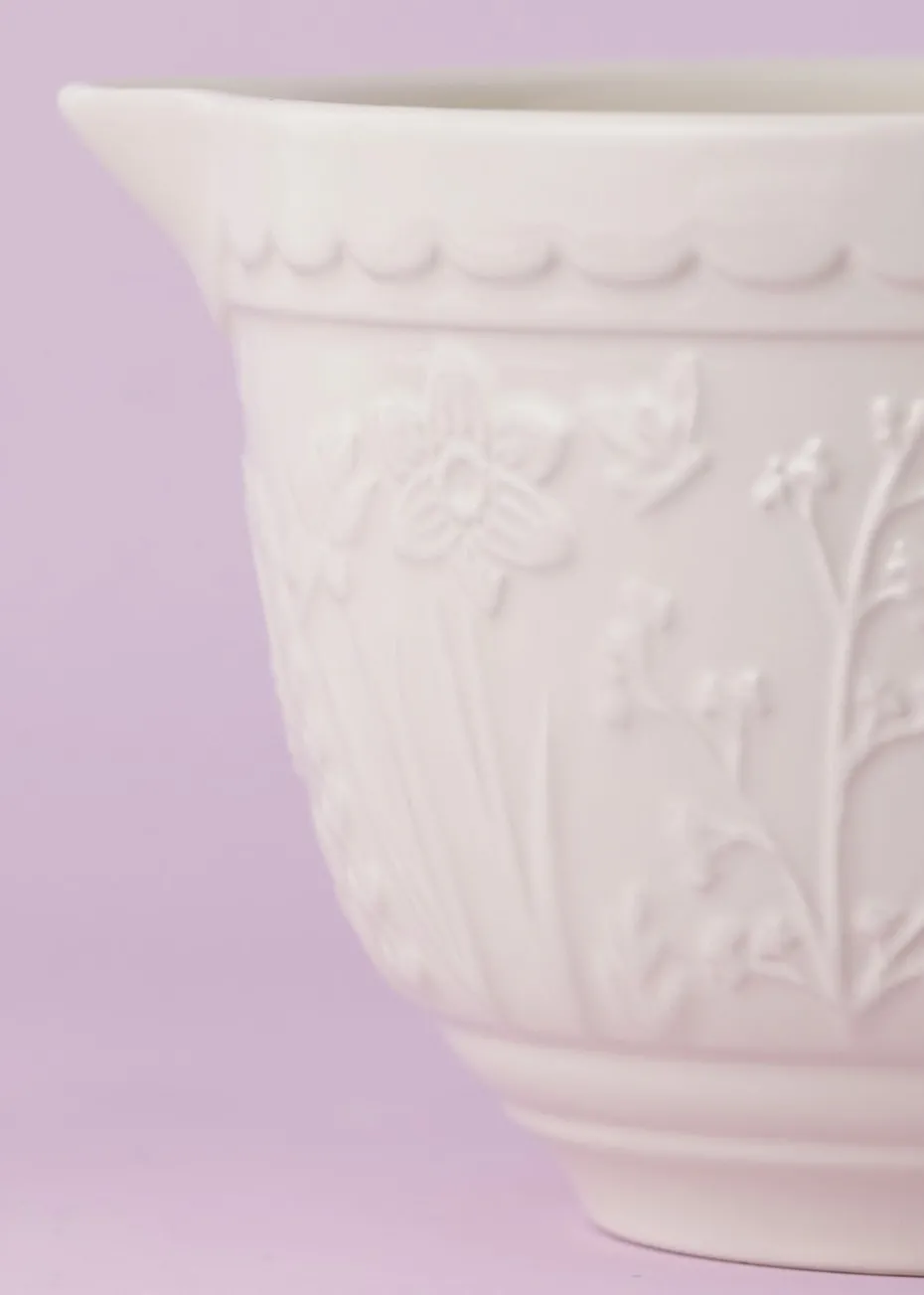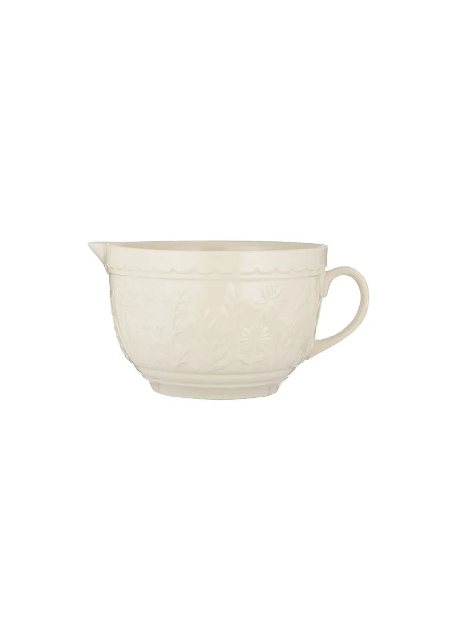 The Mason Cash In the Meadow collection is intricately embossed with delicate florals and foliage, with a beautiful colour palette. A perfect addition to any kitchen. Made from Chip resistant Stoneware, the batter bowl is the perfect solution for mixing batter or whisking eggs. Making it an essential item for the everyday baker. The distinct patterned exterior is designed to help bakers grip the batter bowl, whilst the strong handle allows the bowl to remain sturdy and in place when mixing. The batter bowl also features a pouring lip which is ideal when poring ingredients into cake mixes. The Batter bowl measures 13cm (height) x 19cm (width) x 25cm (depth), with a capacity of 1.9 litres. The batter bowl is dishwasher, microwave and freezer safe. The Batter bowls are a classic for Mason Cash, with a high-gloss glaze providing a chip resistant finish. Mason Cash was established in the heart of the English ceramic industry back in 1800 and has become world renowned for its innovative, classic kitchenware today.