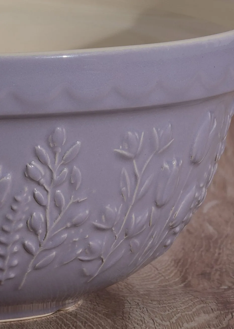 The Mason Cash In the Meadow collection is intricately embossed with delicate florals and foliage, with a beautiful colour palette. A perfect addition to any kitchen. Made from earthenware, the mixing bowl is light enough to hold in one arm while mixing, but sturdy enough when using on the counter top, making it the perfect bowl for home or professional bakers. The distinct patterned exterior and rim is designed to help bakers grip and tip the bowl, while the wide shallow shape allows for kneading within the bowl. The Size 24 Mixing bowl measures 24cm x 11cm, with a capacity of 2 litres, making this a perfect size for dough, pastry, cake or cookie mixes. The bowl is dishwasher and freezer safe. The mixing bowls have been a classic for Mason Cash for centuries, with a high-gloss glaze providing a chip resistant finish. Mason Cash offer mixing bowls in a wide variety of sizes and colours, providing options for every baker and to suit all kitchens. Mason Cash was established in the heart of the English ceramic industry back in 1800 and has become world renowned for its innovative, classic kitchenware today.