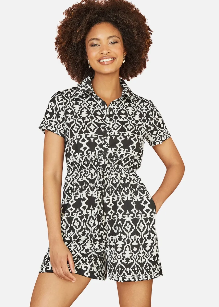 Practically perfect playsuits for the Summer are a staple you should be adding to your wardrobe! The abstract print on this one from Mela is fun and easy to wear. With a front button up fastening, short sleeves and a ruched waistline, style with trainers and a denim jacket for cool girl style.