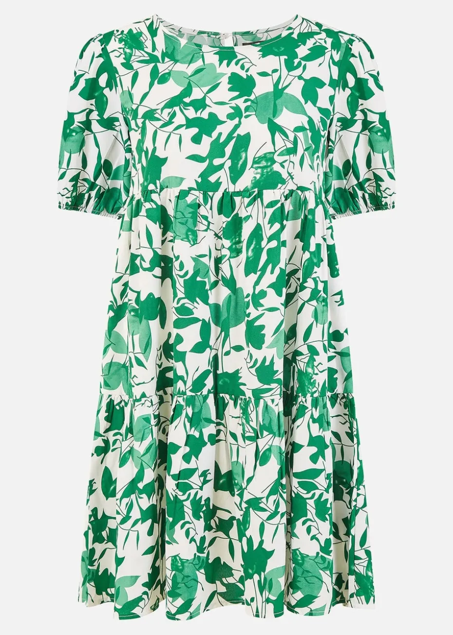 Summer vibes – Check! With an all over Green abstract leaf print, cute puffed short sleeves, and that classic easy shape that looks fab paired with trainers or sandals for casual sunny days. This tunic from Mela is the perfect addition to your wardrobe for picnics in the park, or adding to your suitcase.