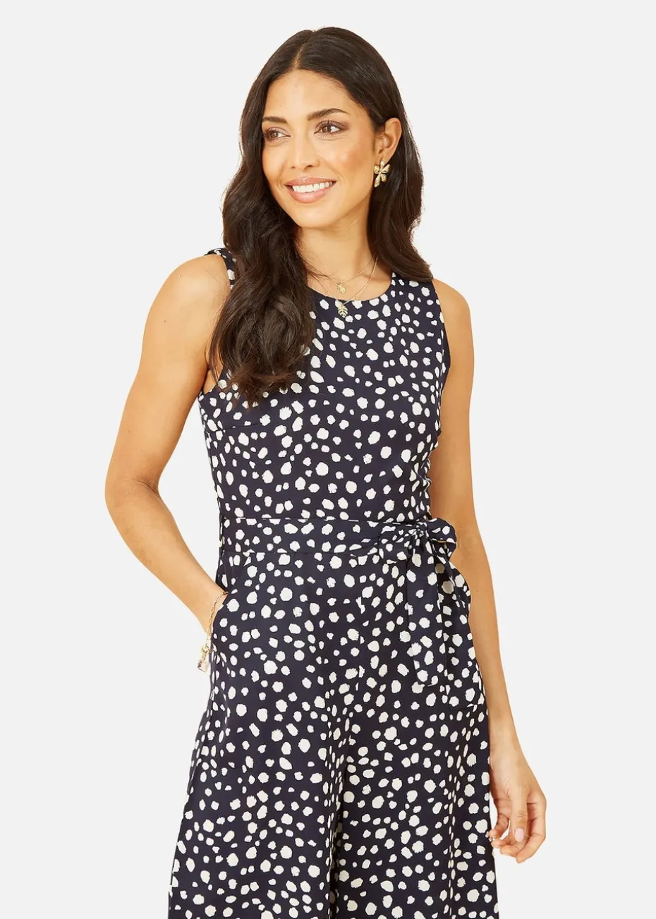 Think workwear, evening wear, a cool and casual day time fit – this Mela jumpsuit really does do it all. With a modern blotch print, round neckline and a cinched self tie belted waist, it’s hard not to look your best.