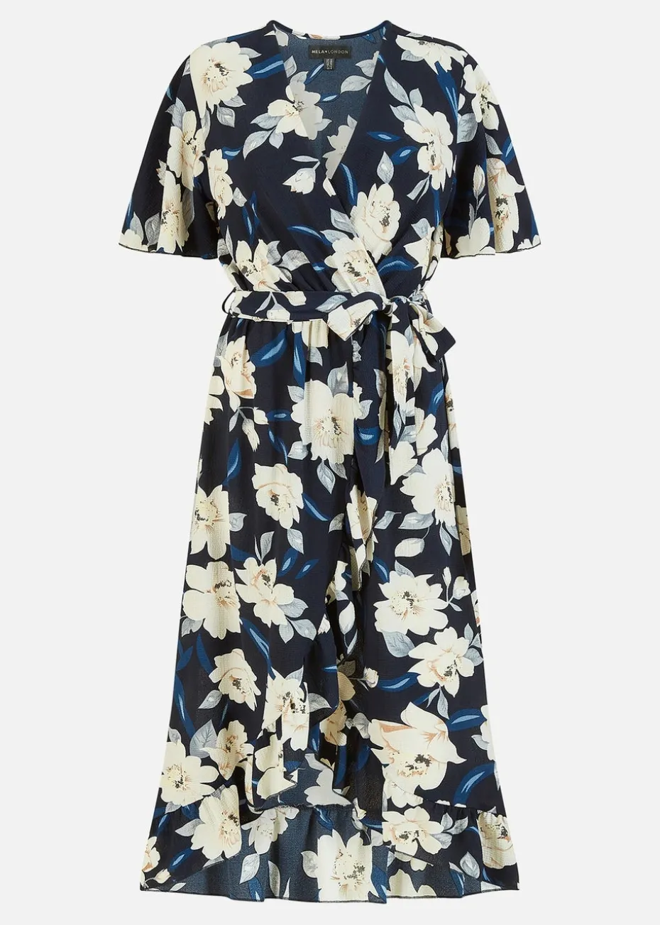Be the first to review “Mela Navy Floral Dip Hem Wrap Midi Dress” Cancel reply