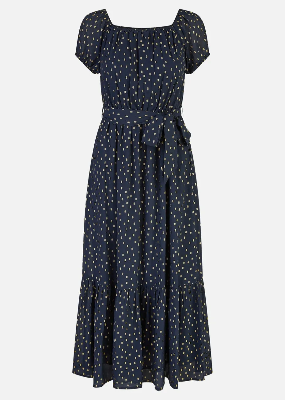Be the first to review “Mela Navy Foil Print Bardot Midi Dress” Cancel reply