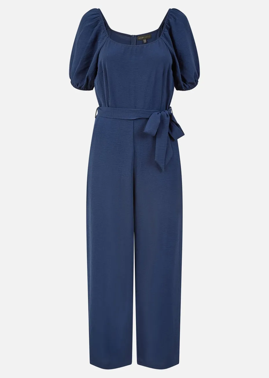 Mela Navy Square Neck Puff Sleeve Culotte Jumpsuit