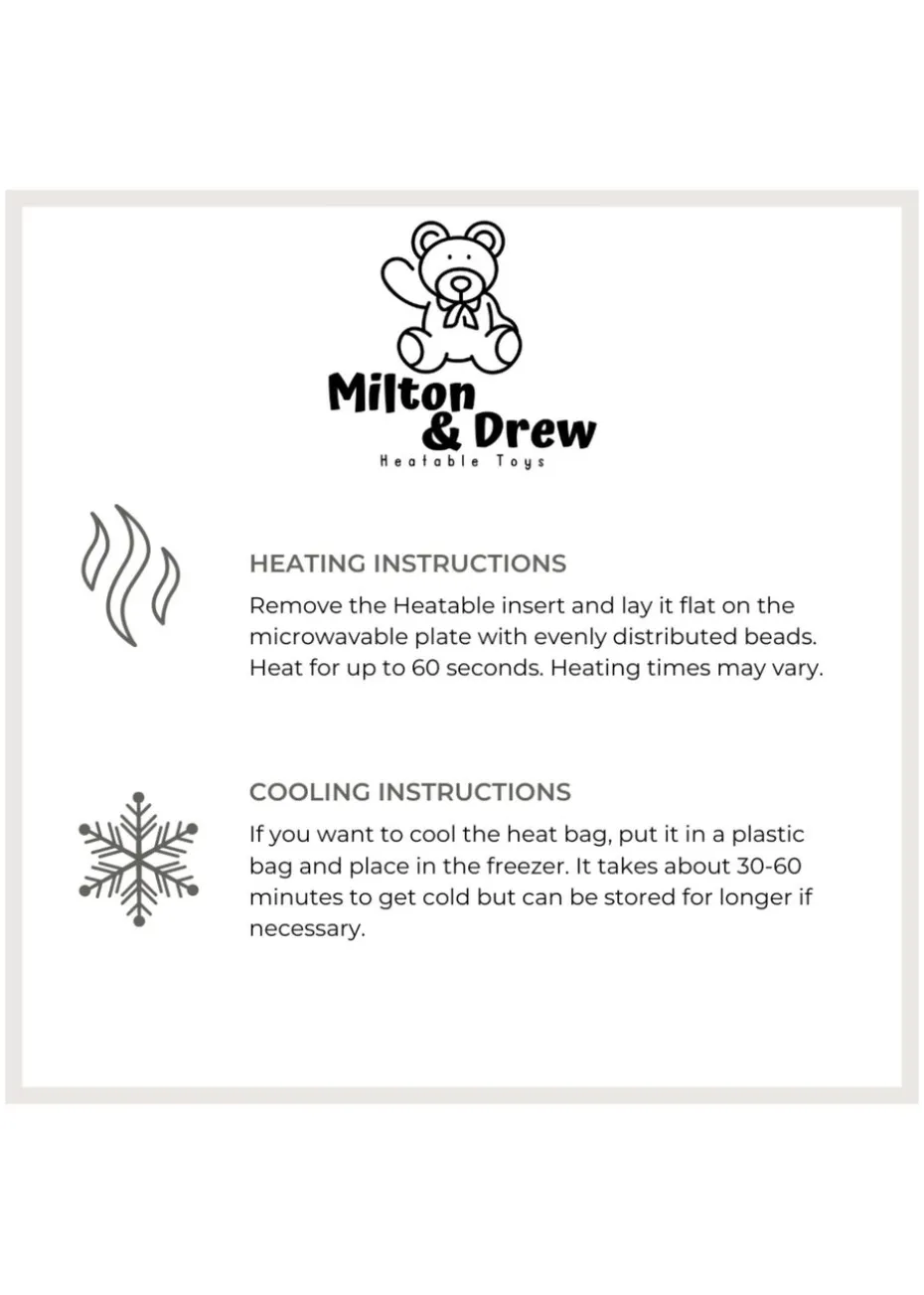 Use Hot or Cold! Let’s have a cuddly time with this cute Panda heatable teddy. This Cute Panda Plush toy is perfect for cuddles with or without the heatable insert. Can be used for play time to bring your child’s imagination to life or simply heat up the insert for some chillout cuddle time. Treat your little one to hours of fun and hugs with this stuffed Panda toy. Heating Instructions: Heating times vary per microwave. Heat for between 45 and 60 seconds. Check product images or details for further instructions Cooling Instructions: If you want to cool the heat bag, put it in a plastic bag and place it in the freezer. It takes about 30-60 minutes to get cold, but can be stored for longer if necessary