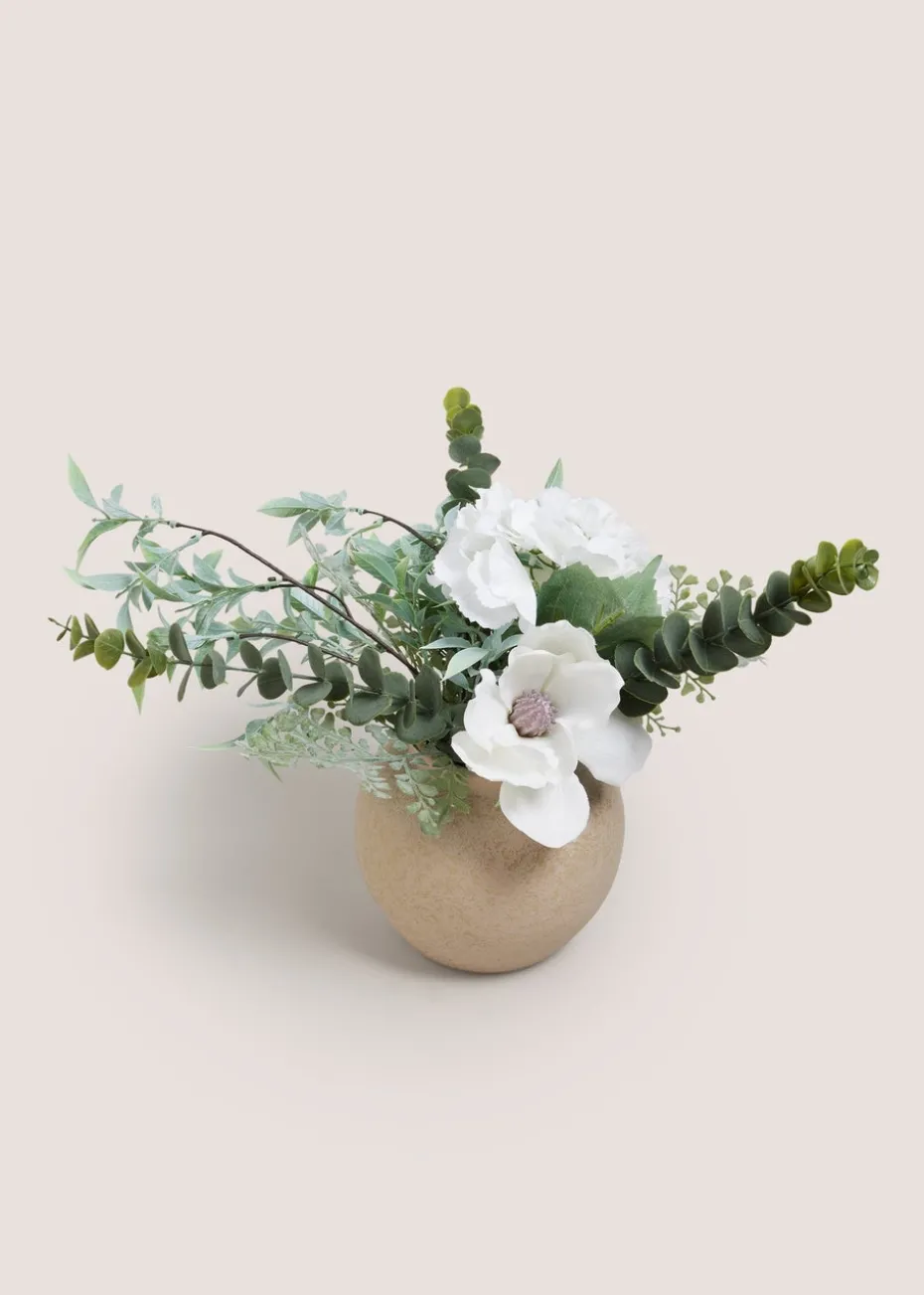 Add a touch of rustic charm to your home décor with our elegant mixed flowers in grey pot. This timeless piece is the perfect way to showcase artificial white and green flowers and leaves. Crafted from ceramic, the pot features a sturdy construction with a rough and rustic grey finish. Its generous size creates a statement piece, while the neutral colour effortlessly complements any décor style. Bring nature indoors with this delightful display that will brighten up any room.
