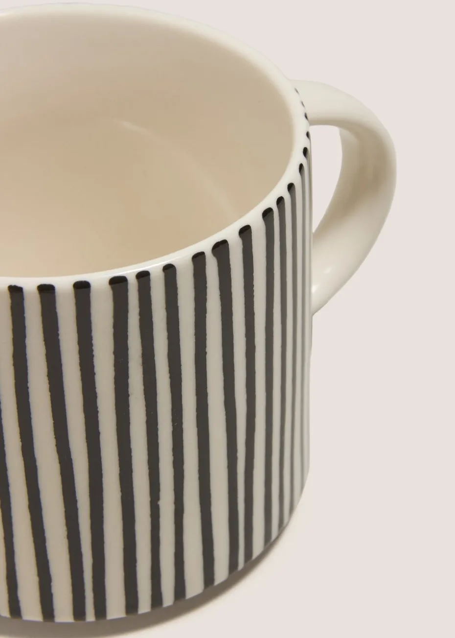 Give your morning brew a modern update with our monochrome striped mug. This ceramic mug features a stylish striped pattern in a monochrome colourway, making it a striking and practical addition to your kitchenware collection.