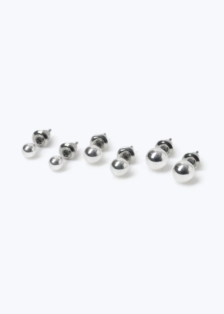 Timeless and versatile, the Muse 3 Pack Silver Ball Stud Earrings includes three pairs of polished silver-tone studs in varying sizes. Perfect for stacking or solo wear, these everyday essentials add a subtle touch of shine to any look.