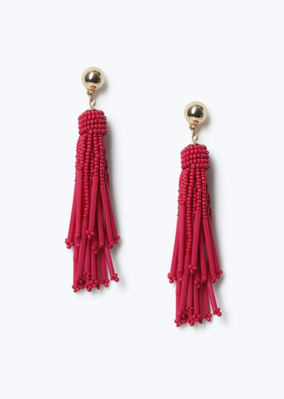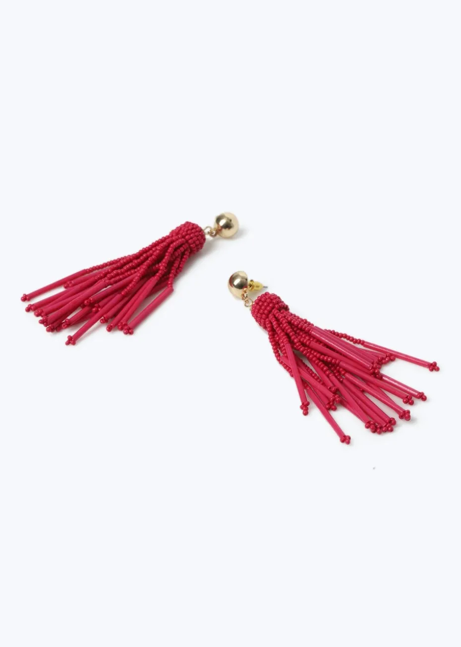 Muse Pink Seedbead Tassle Drop Earrings
