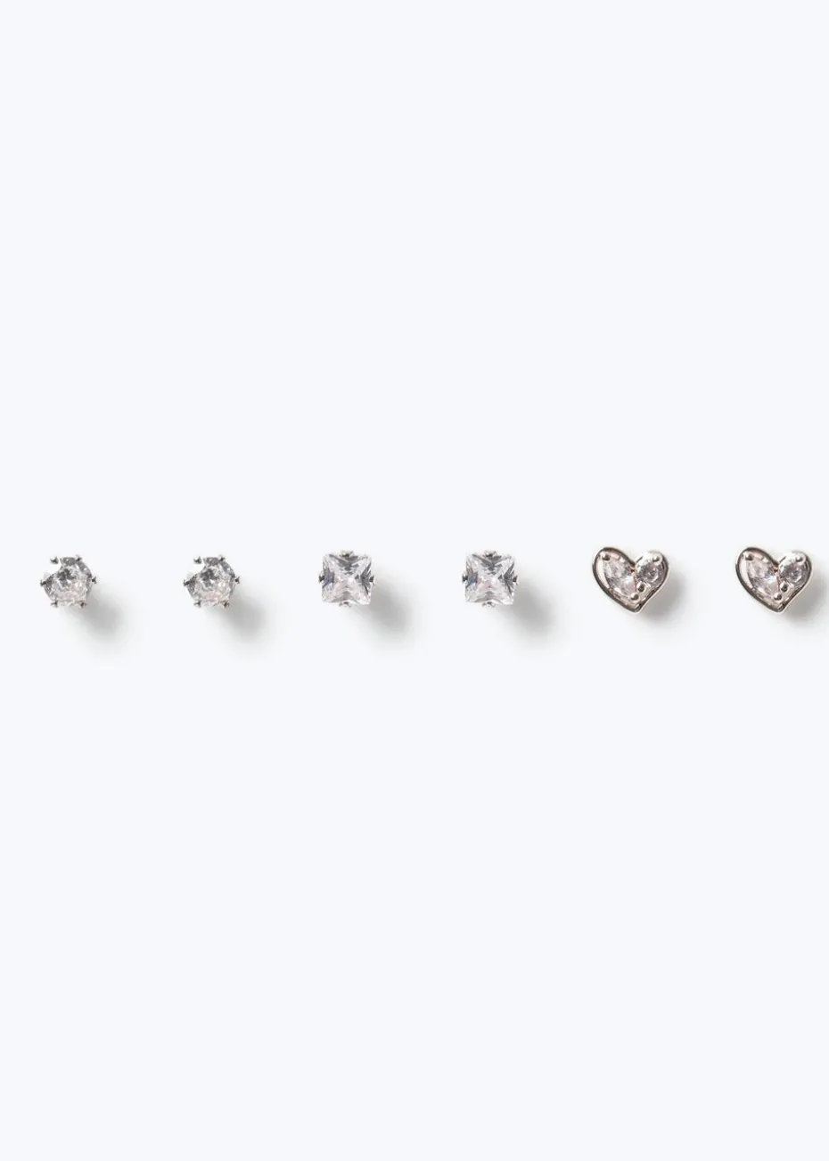 Muse Silver Cubic Zirconia Mixed Stud Three Pack Earrings
