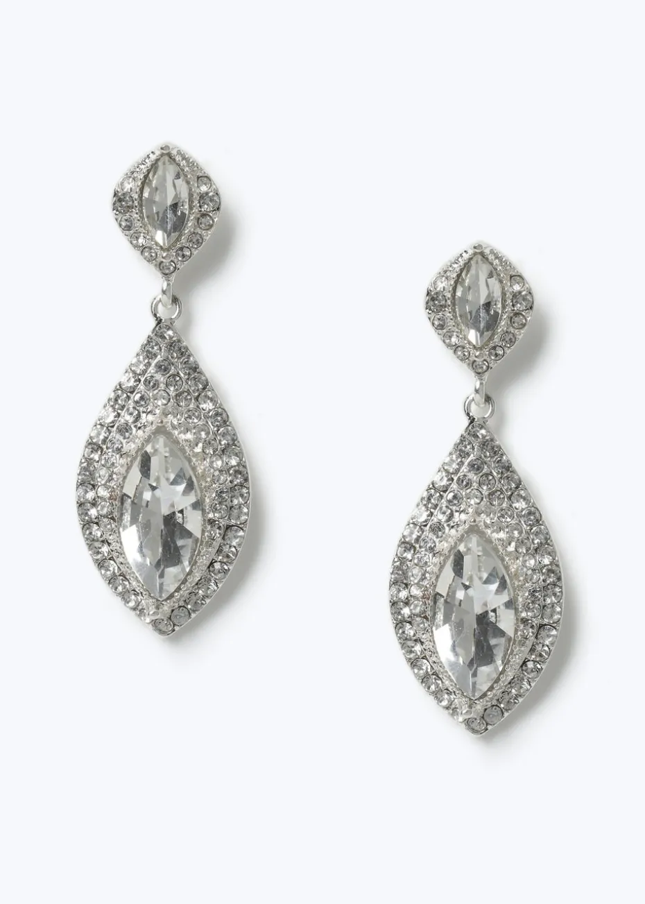 Muse Silver Rhinestone Teardrop Earrings