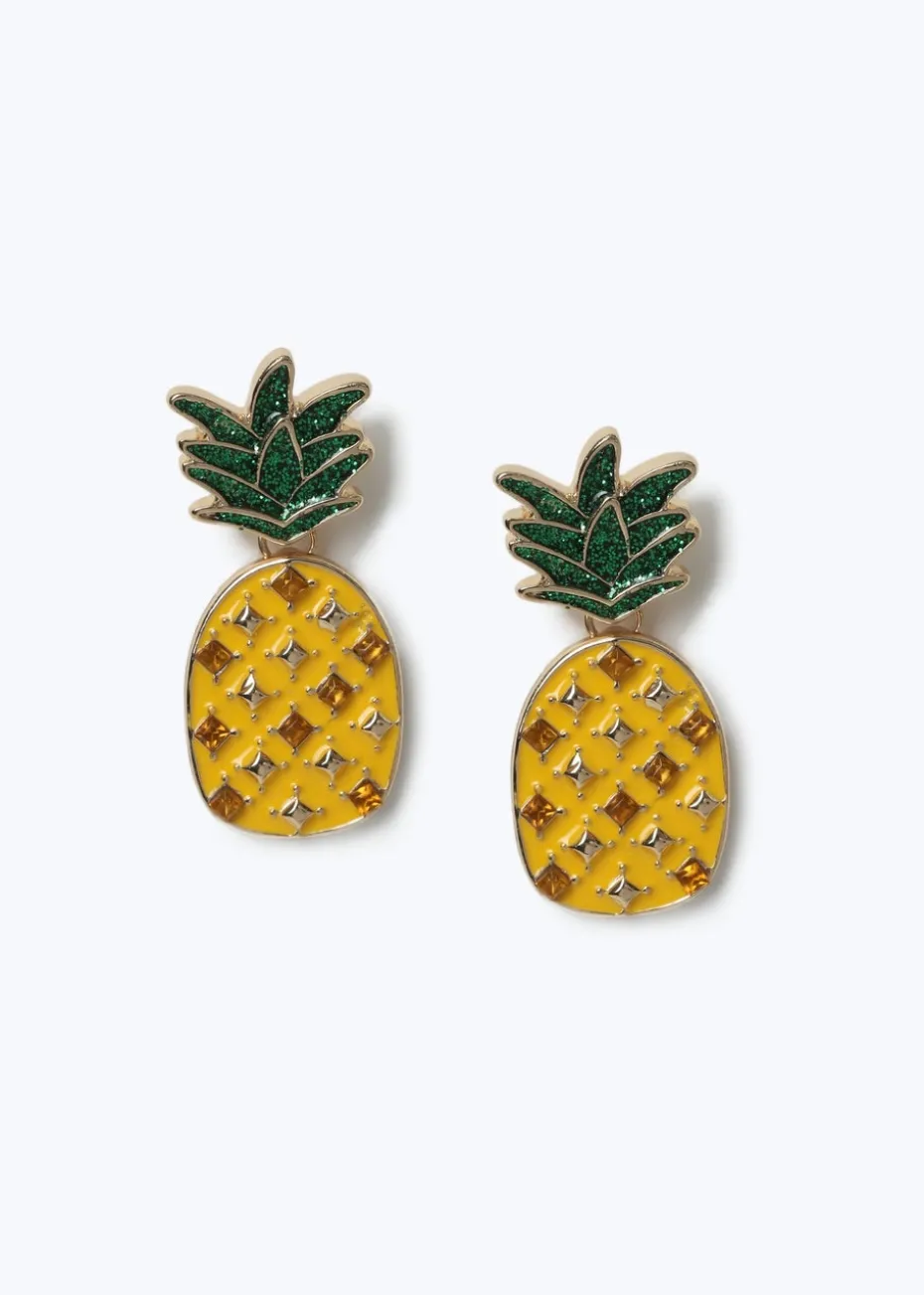 Add a splash of tropical fun to your accessories collection with the Muse Yellow Pineapple Drop Earrings. These playful earrings feature a vibrant pineapple design with sunny yellow and green detailing, bringing a fruity twist to your summer style. Perfect for holidays, festivals, or just brightening up your everyday look!