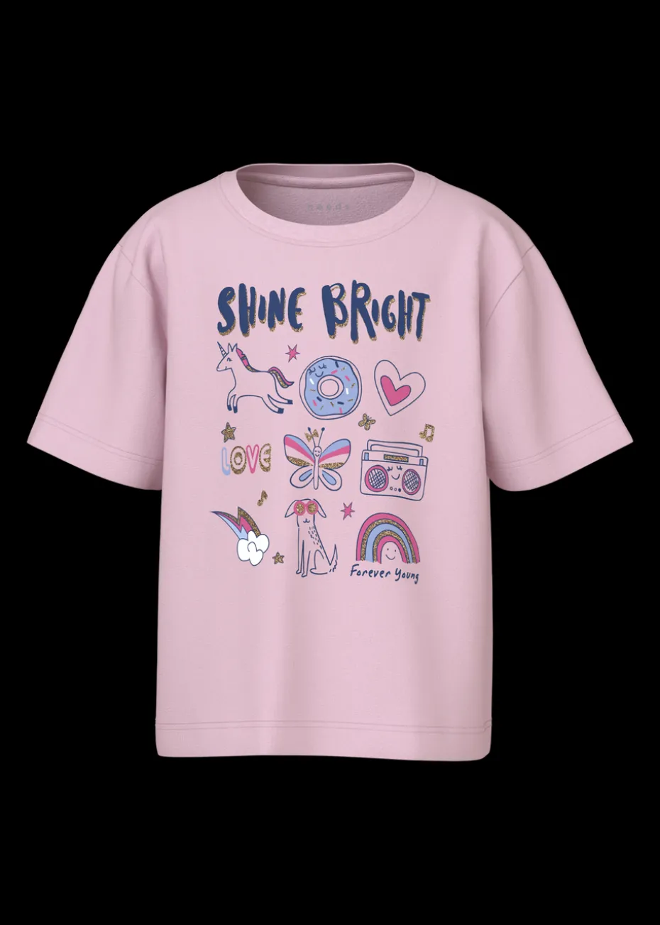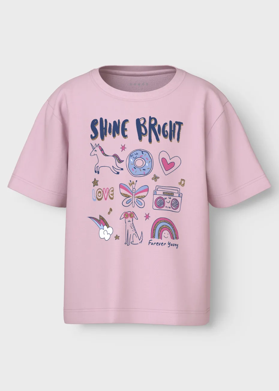 Let her sparkle and shine with the Name It Girls Pink Shine Bright T-Shirt. Designed for girls who love a pop of color and positivity, this soft pink tee features a playful “Shine Bright” graphic, inspiring confidence with every wear. With a classic crew neck and a relaxed fit, this T-shirt pairs effortlessly with jeans, shorts, or leggings for a fun and casual look.