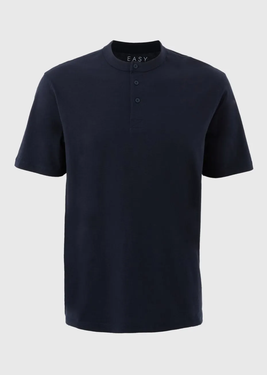 Upgrade your casual wardrobe with the Navy Grandad Style T-Shirt, combining comfort and sophistication in one. With a unique grandad button-down design, this t-shirt brings a fresh twist to a classic look, making it perfect for effortless, everyday wear. Team it with denim jeans and sneakers for a relaxed weekend vibe.