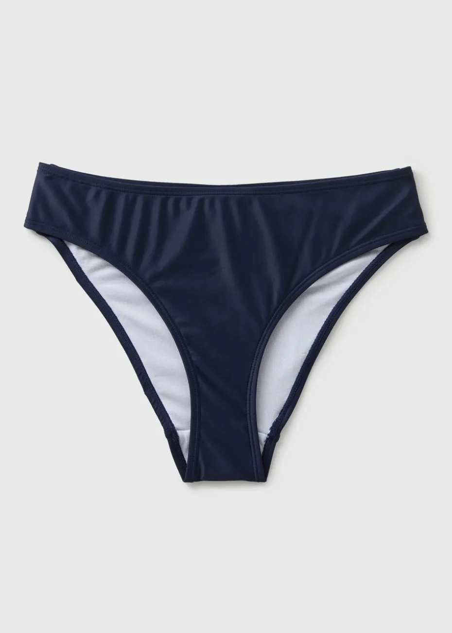 Flattering, stylish, and perfect for soaking up the sun, these Navy High Waist Brazilian Bikini Bottoms are a swimwear staple. Designed with a sleek high-rise fit that smooths and supports, they feature a cheeky Brazilian cut to enhance and flatter your curves.