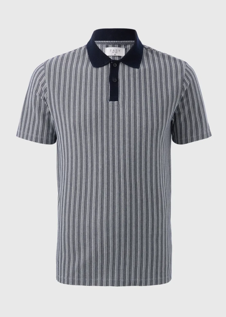 Elevate your smart-casual wardrobe with the Navy Jacquard Stripe Polo Shirt, designed for sophisticated comfort and effortless style. Featuring a subtle jacquard stripe pattern, this polo adds texture and depth to your look while maintaining a classic and refined aesthetic. Pair it with chinos and boat shoes for a relaxed yet refined weekend look.