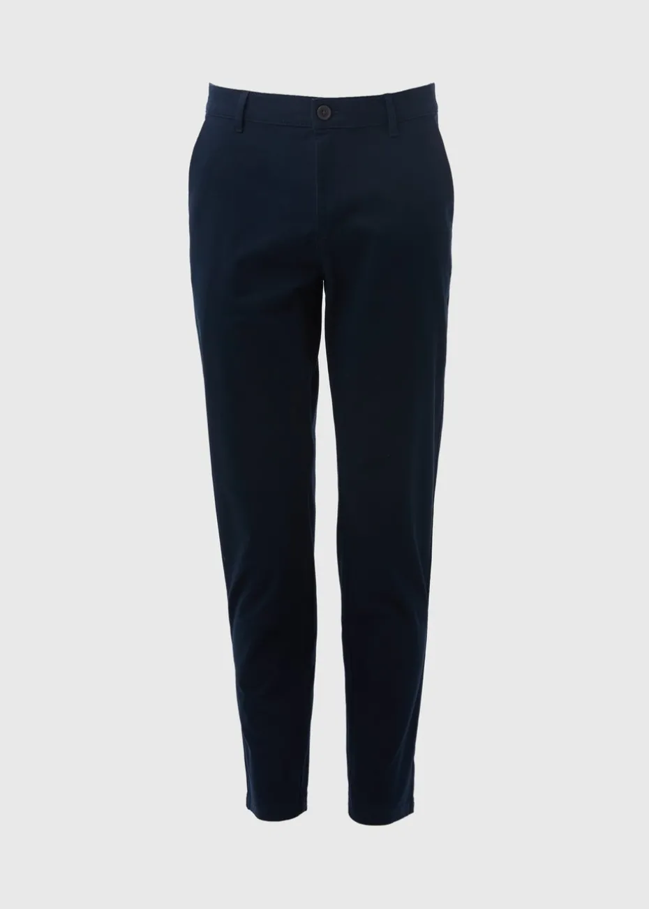 Update your off-duty line up with these stylish navy chinos, which carry a straight fit through the leg. Made from breathable cotton with stretch for added comfort, these trousers fasten with a button and zip and are finished with five belt loops, plus front and back pockets to hold any essentials.