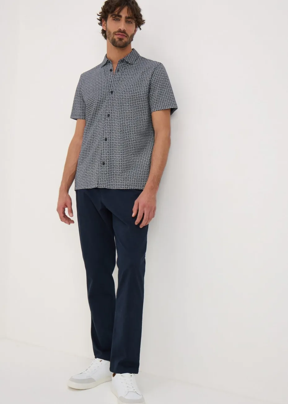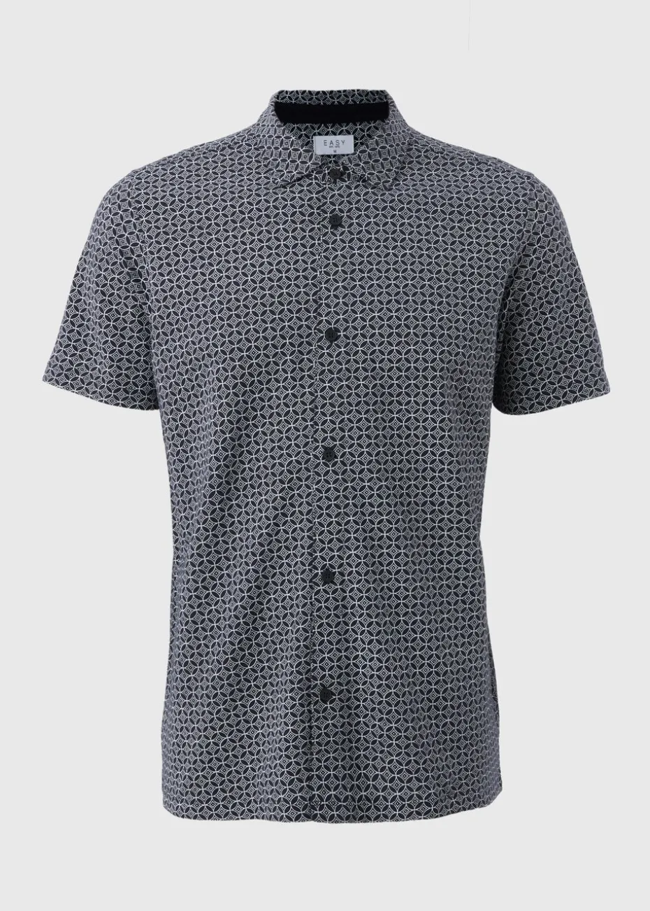 Upgrade your wardrobe with the Navy Tile Print Shirt, a perfect blend of smart and casual style. Featuring a sophisticated tile print pattern against a rich navy background, this shirt offers a modern, stylish look that’s perfect for day-to-night dressing.