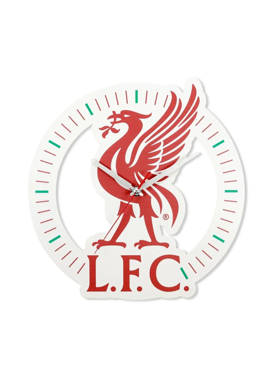 Liverpool Football Club Wall Clock. This red and white wall clock features an iconic Liverpool Football Club liver bird face and a 3-hand dial. Packaged in official branded packaging and comes with one-year guarantee.