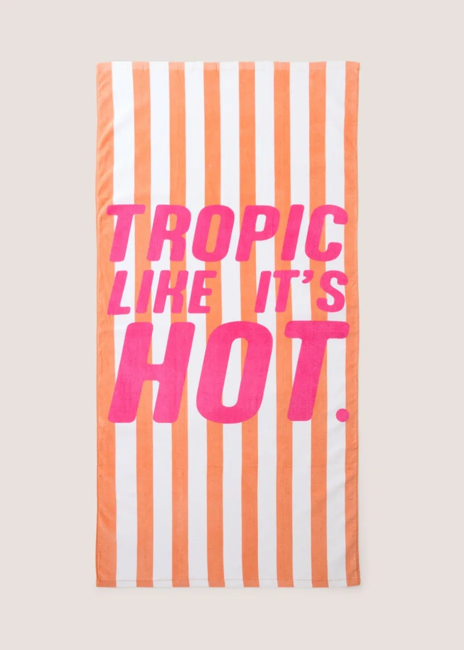 Soak up the sun in style with the Orange Stripe Slogan Beach Towel! Designed with vibrant orange stripes and a fun, eye-catching slogan, this towel is a must-have for beach days, poolside lounging, or summer vacations.