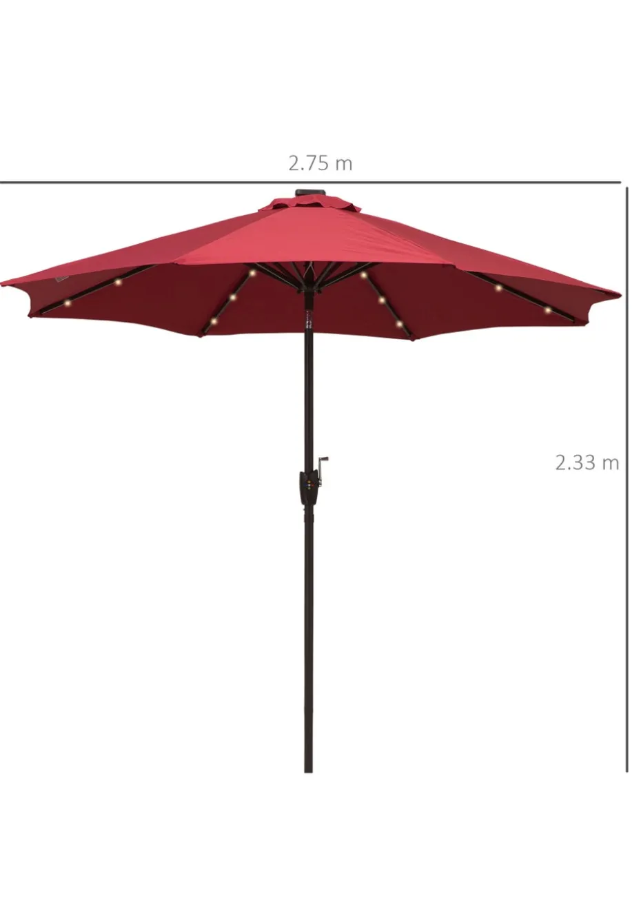 Outsunny Φ2.7m Garden 24 LED Light Parasol Solar Outdoor Tilt Sun Umbrella Patio Sun Shade