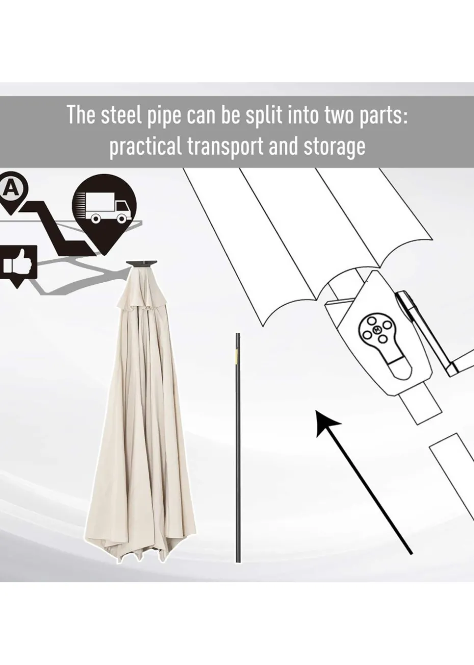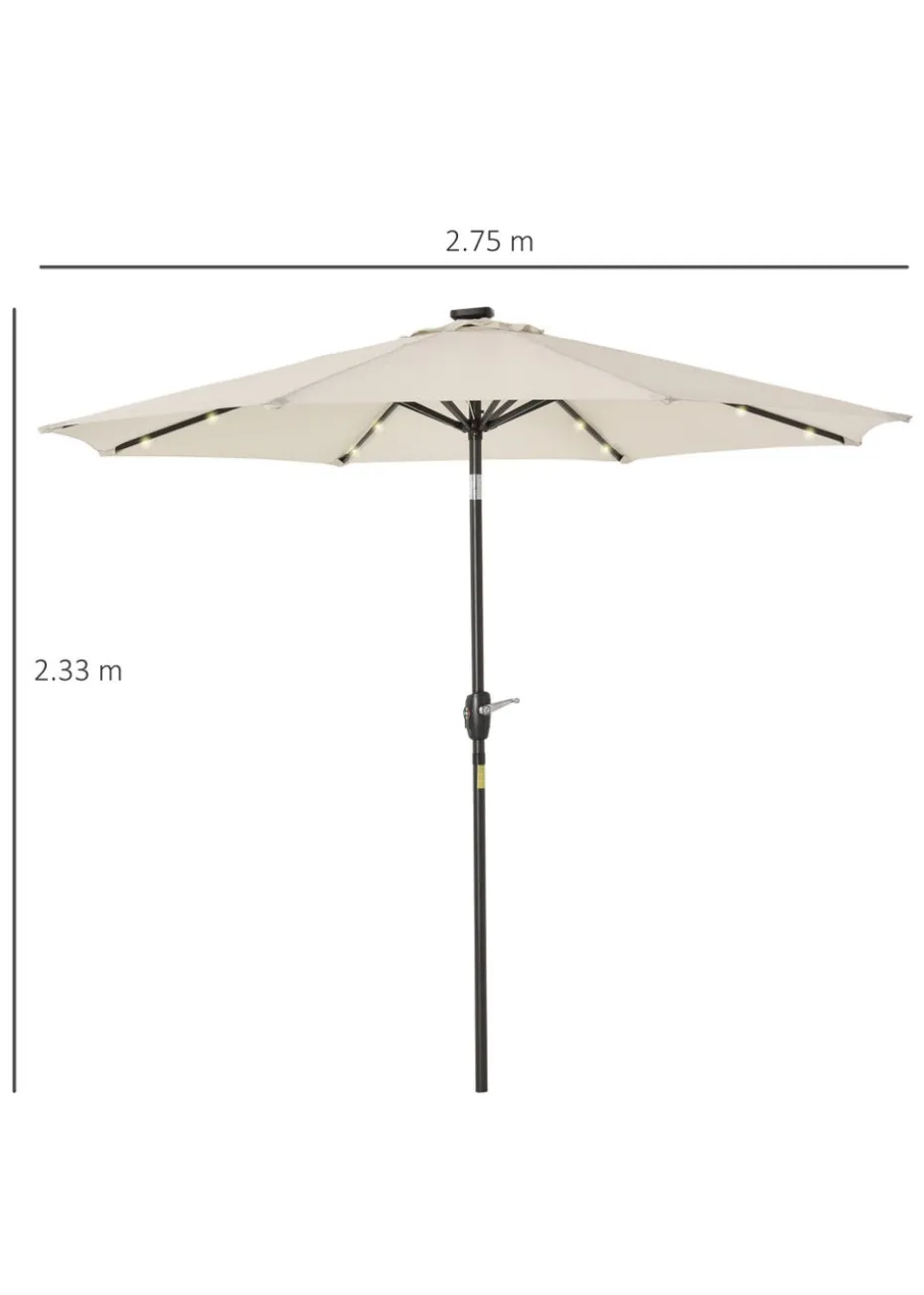 Outsunny Φ2.7m Garden 24 LED Light Parasol Solar Outdoor Tilt Sun Umbrella Patio Sun Shade