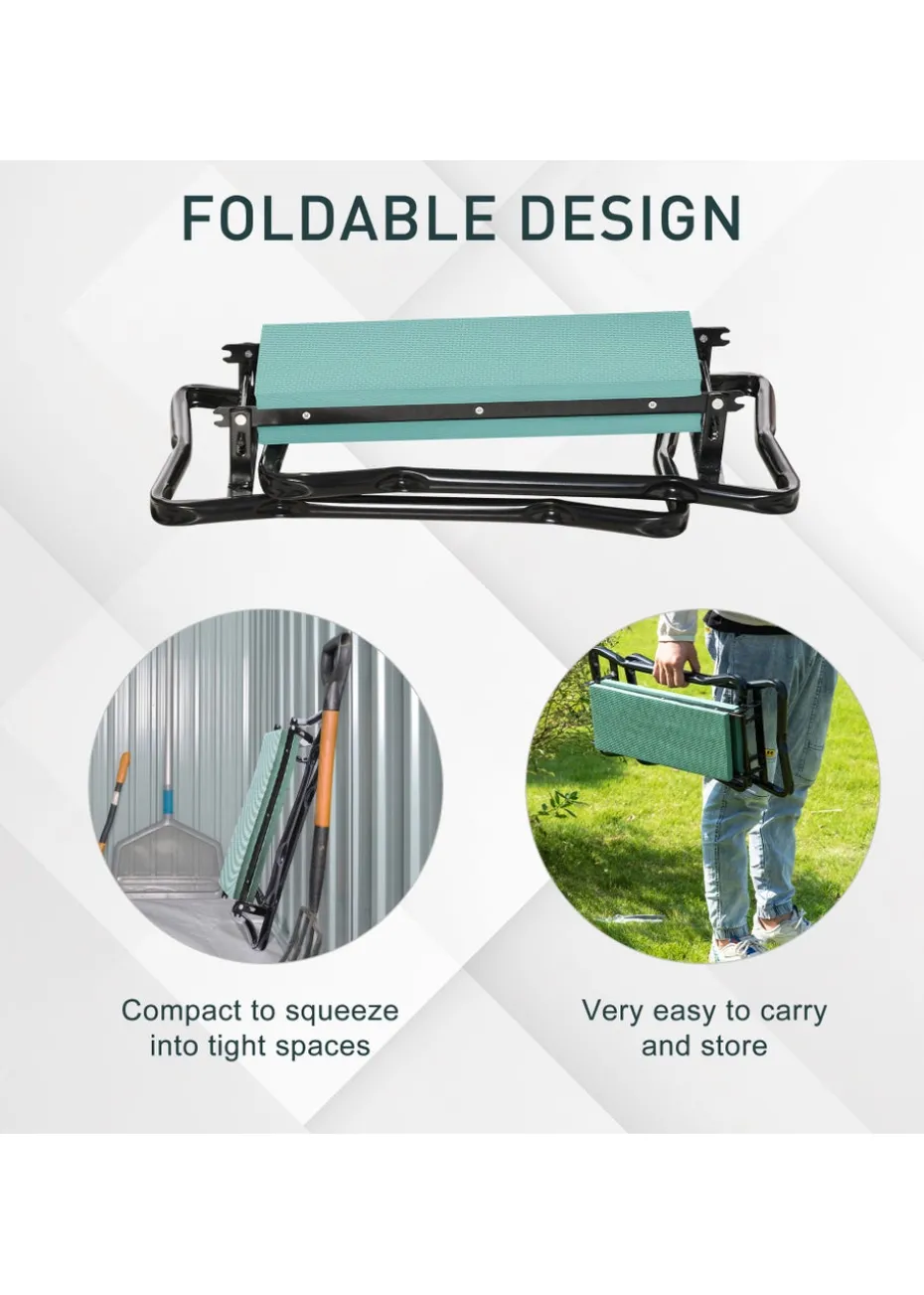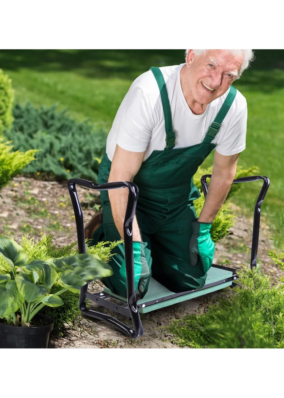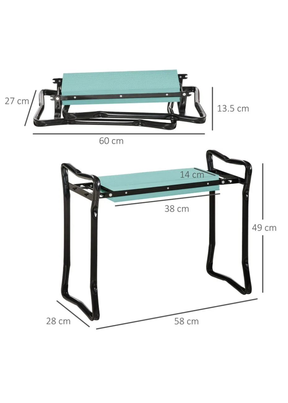 This Outsunny 2 in 1 bench and kneepad is a great accessory to have to help while you work in your garden. Designed to make planting easy and protect your clothes from dirt and grass stains, this bench can be folded for easy storage and when flipped over it can be used as a kneeling pad to protect your kneecaps. It features a metal construction with foam padding for comfort, while the ergonomic design helps reduce strain to your knees and back. Featuring a plastic board between EVA pads, it folds neatly away for easy storage on the wall or shelf and is suitable for indoor or outdoor use. Dimensions: L 58cm x W 28cm x H 49cm. Folded Dimensions: L 60cm x W 27cm x H 13.5cm. Pad Dimensions: L 38cm x W 14cm x D 2cm. Net Weight: 2.5kg. Capacity: 150kg.