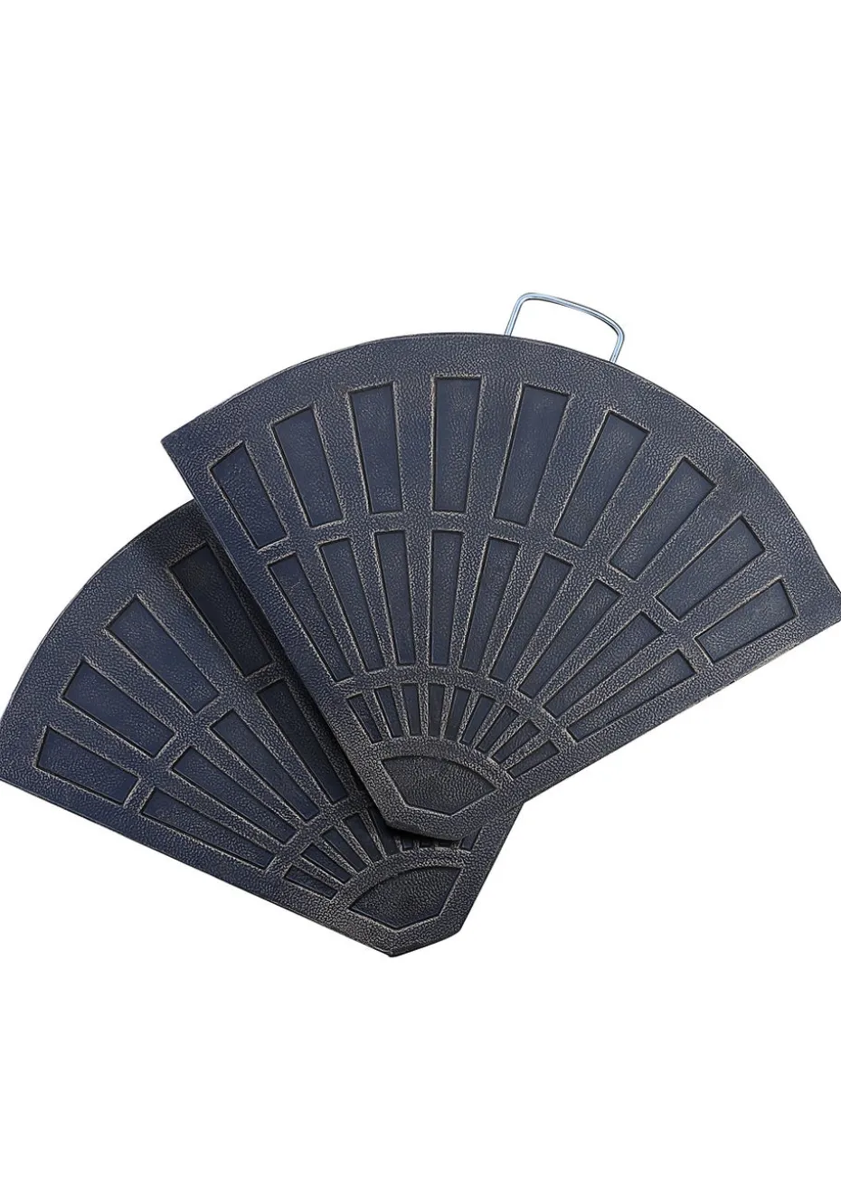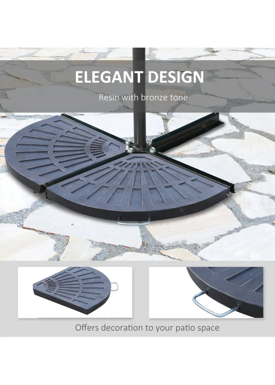 Keep your parasol umbrella weighted beautifully and effectively with this set of two bases from Outsunny. Made from resin, they are crafted in a textured fan design. Please note: only the two bases are included in this package, not the stand. They are only suitable for cross base parasols. Size: L 47cm x D 66cm x H 4.2cm. Features: Set of two garden parasol umbrella bases. Weights umbrella effectively. Made from rosin with a bronze tone plastic coating. Beautiful engraved fan design looks great with all garden furniture styles. NOTE: For use with cross-base parasols (stand shown in image is NOT included). Specifications: Colour: Bronze. Made of colophony. Size: 47Lx 66D x 4.2Hcm. Total net weight: 28kg (14kg each). Custom Label: 01-0221.